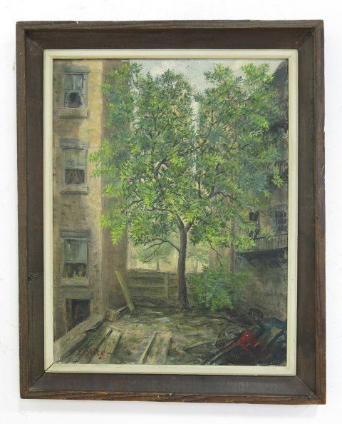 City Landscape. Signed lower left. Approx. 26" H x 20" W image, 31 1/2" H x 25" W framed.