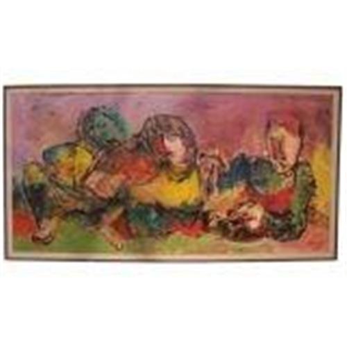 Leon Saulter (1908-1986) abstract painting, appears to be acrylic on board. Born in Wilno, Poland and died in Los Angeles, California. Exhibited: LA County Museum of Art; Contemporary Art Gallery; UCLA; Occidental College; P&S of Los Angeles. Sources: Who was Who in American Art 53 and 47. More recently, see Hughes, Artists in California, 492. Bio also in Fielding's. Listed ,, and Davenport's.