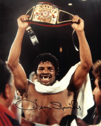Leon Spinks had an overall record of 26 wins, 17 losses and 3 draws as a professional, with 14 knockout wins. He won the gold medal in the light heavyweight division during the 1976 Summer Olympics in Montreal, alongside brother Michael Spinks, who also won a gold medal in those games. Two years earlier, at the inaugural 1974 World Amateur Boxing Championships in Havana, Cuba, he captured the bronze medal. He made history on February 15, 1978, when he beat Muhammad Ali in a 15-round decision in Las Vegas. Spinks thus won the world heavyweight title in only his eighth fight, the fastest ascent in history. With this victory, Spinks became the only man to ever take a title belt from Muhammad Ali in the ring. Leon Spinks has hand autographed this Boxing 8x10 Photo. Certificate of Authenticity from Athlon Sports Collectibles.