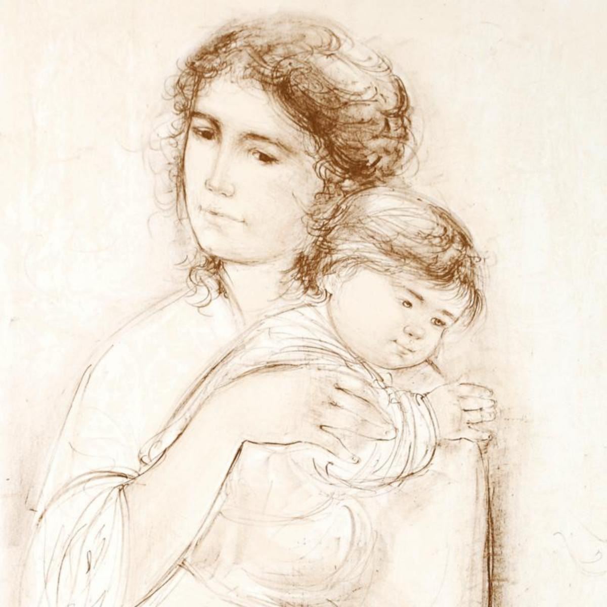"Leona and Baby" Limited Edition Lithograph by Edna Hibel, Numbered and Hand Signed with Certificate