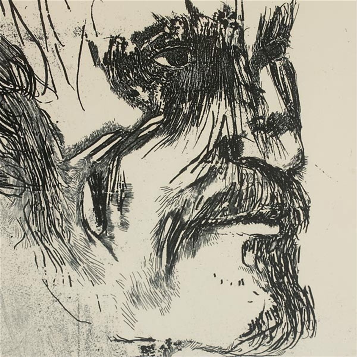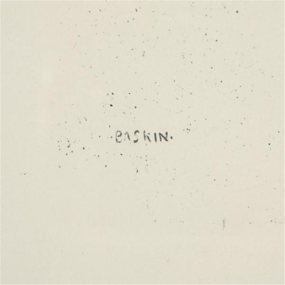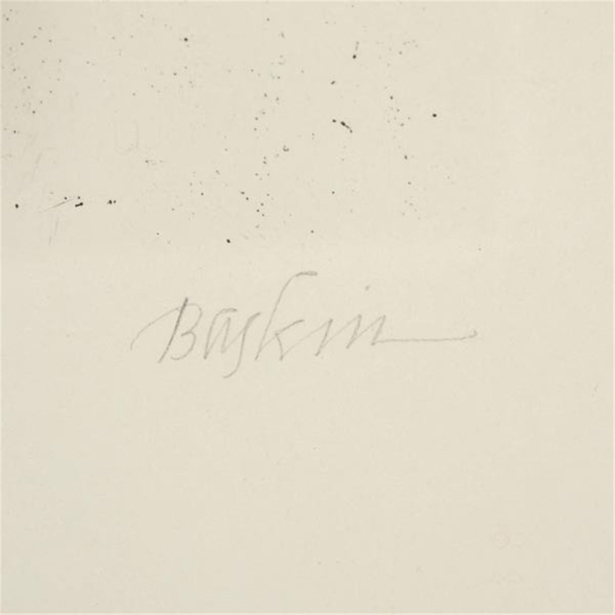 LEONARD BASKIN (American 1922-2000) Portrait of a Man Etching on paper Sheet: 29.50 x 22 inches/ 74.9 x 55.8 centimeters Signed lower right "Baskin" Numbered lower center "4/100" Frame: 32.75 x x24.75 inches/ 83.3 x 62.8 centimeters In good condition: Slight yellowing to edges, 2 minor creases. Framed, float mounted, and glazed.