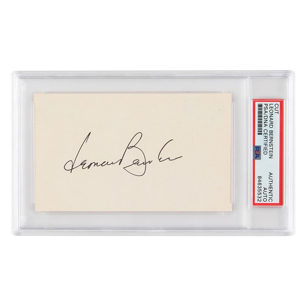 Neat ink signature, "Leonard Bernstein,†on an off-white 5 x 3 card. In fine condition. Encapsulated in a PSA/DNA authentication holder.