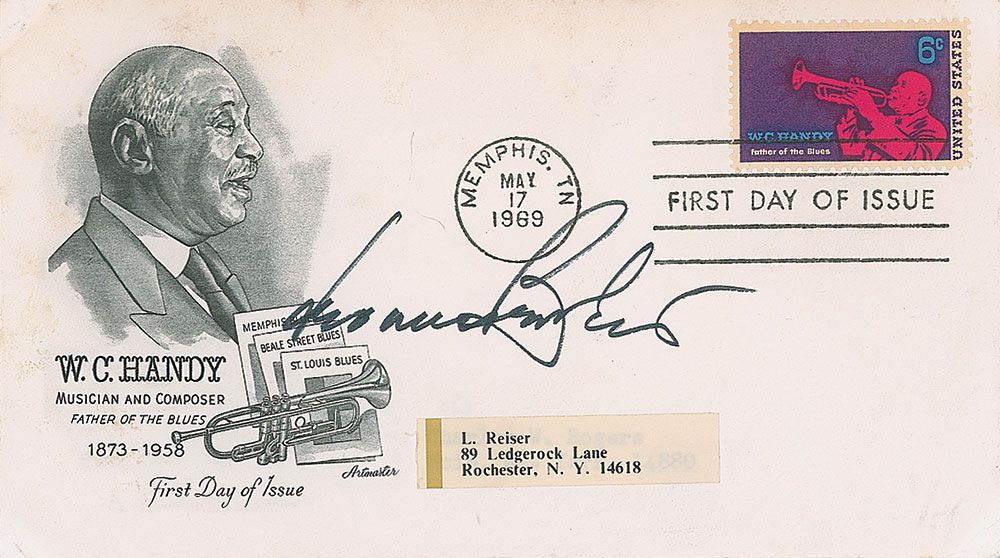 FDC with a cachet honoring W. C. Handy, signed in black felt tip by Bernstein. In fine condition, with trivial soiling to top edge and an address label affixed below the signature.