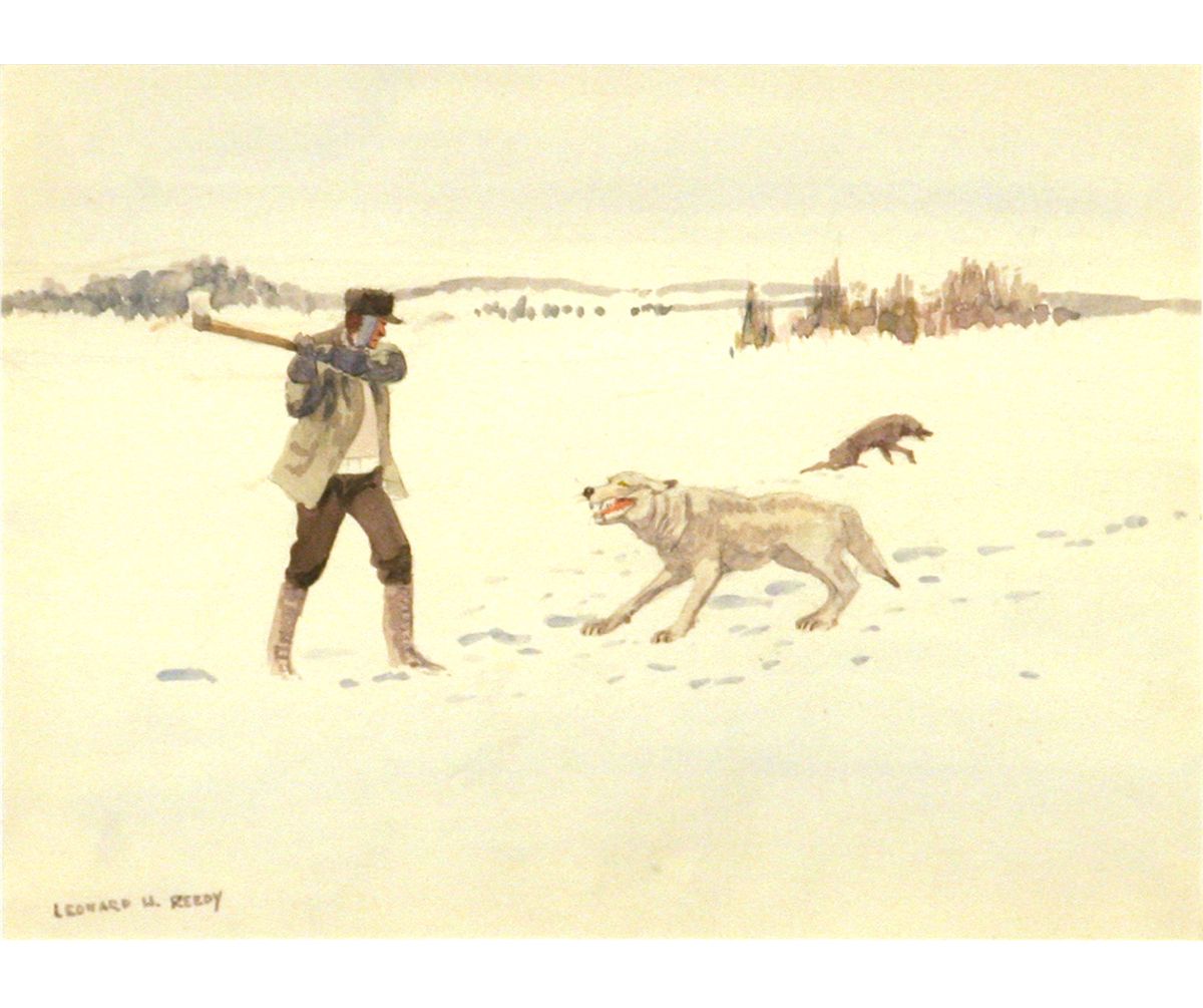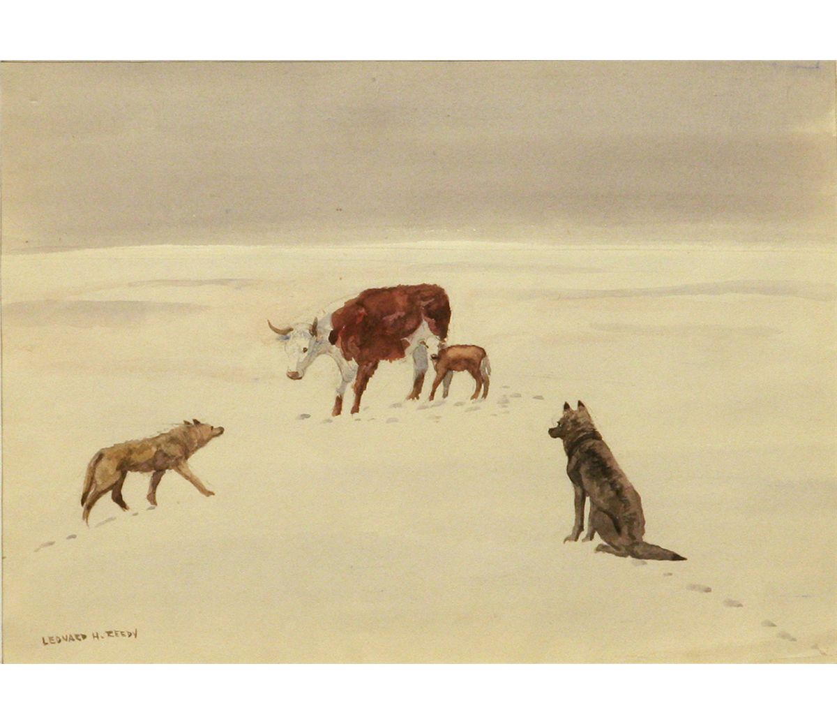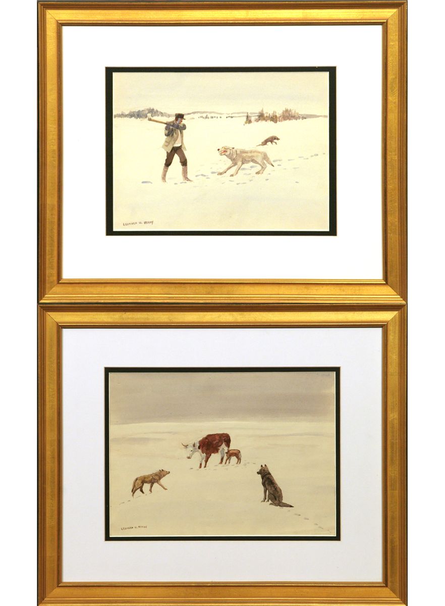 Leonard Howard Reedy (1899 - 1956). Wild Confrontation and Surrounded. Two 8.5" x 10" watercolors. Both are signed: LEONARD H. REEDY.