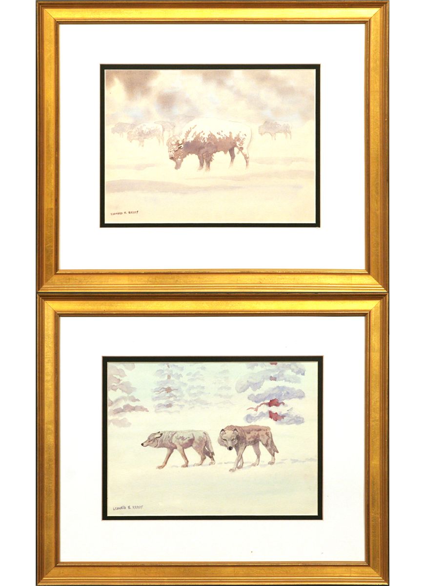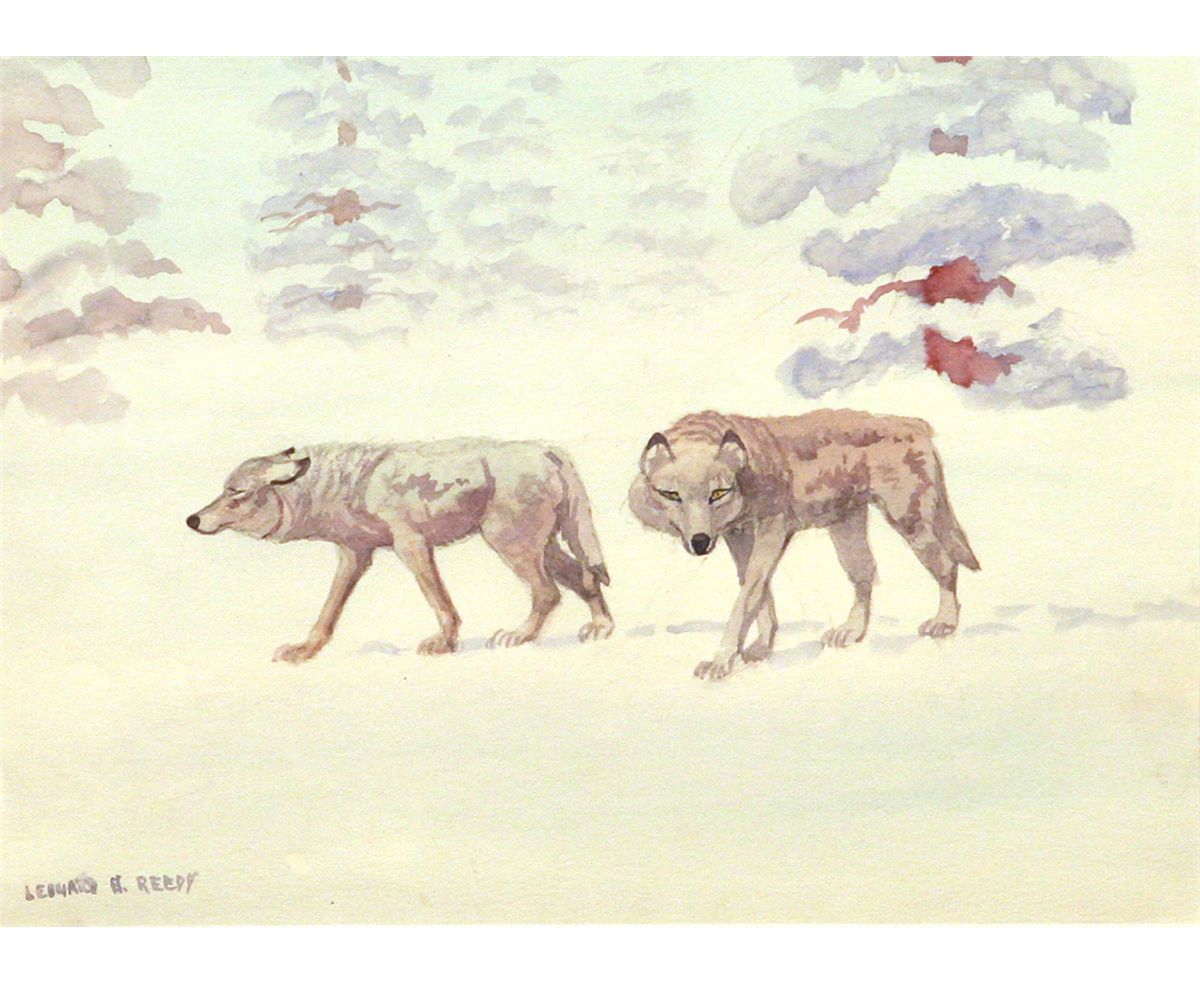 Leonard H. Reedy (1899 - 1956). Scavenger and The River Crossing. Two 8.5" x 10" watercolors. Both are signed: LEONARD H. REEDY.