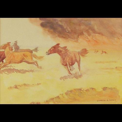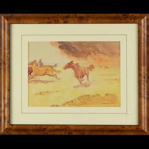 Leonard Reedy (1899-1956) (Illinois) Watercolor, Galloping Horses, sight size 7 3/4 x 10 3/4, signed lower right