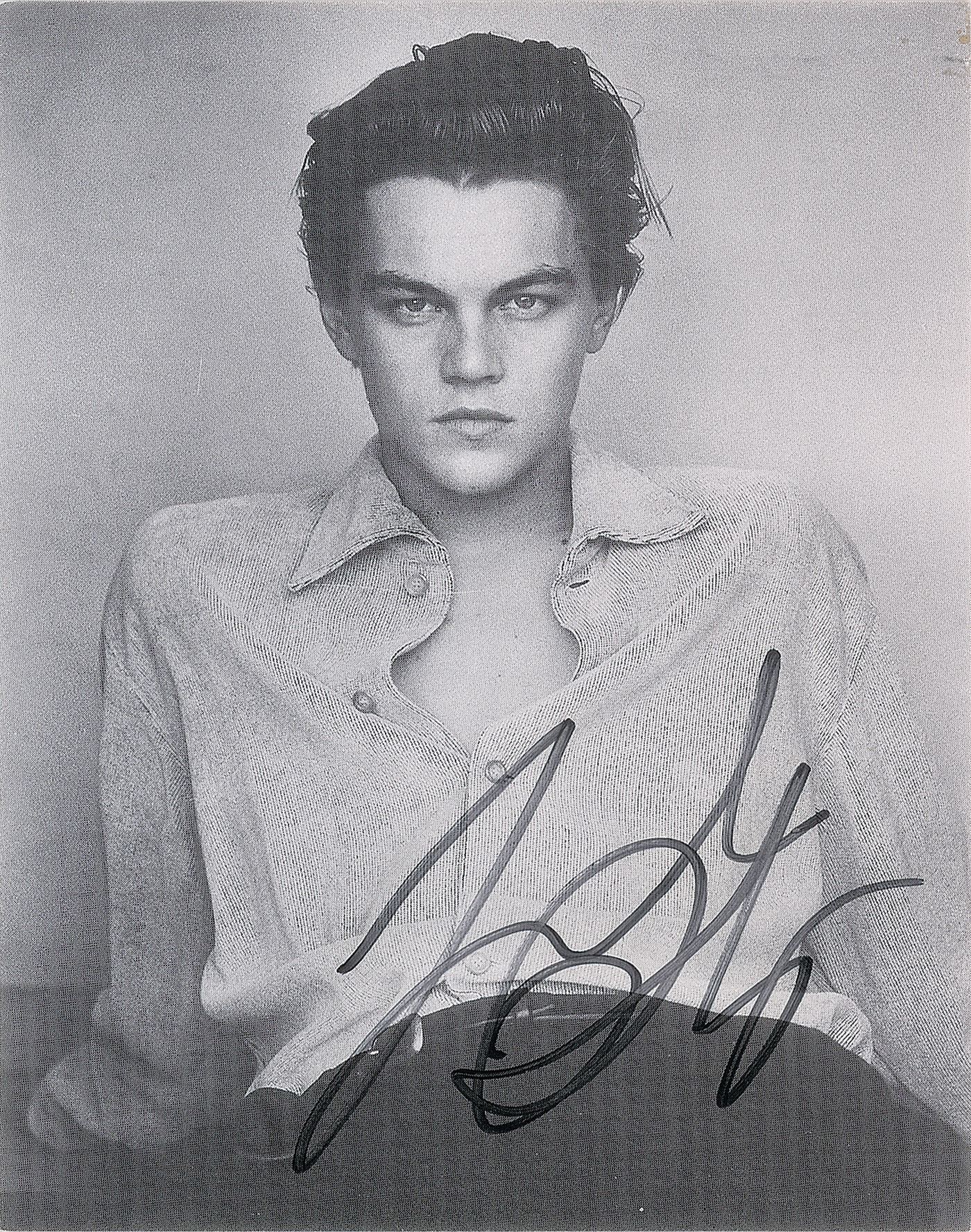 Handsome 4.5 x 5.75 cardstock photo of the young DiCaprio, signed in black felt tip. In fine condition, with a JSA label affixed to the reverse. Accompanied by a certificate of authenticity from JSA.