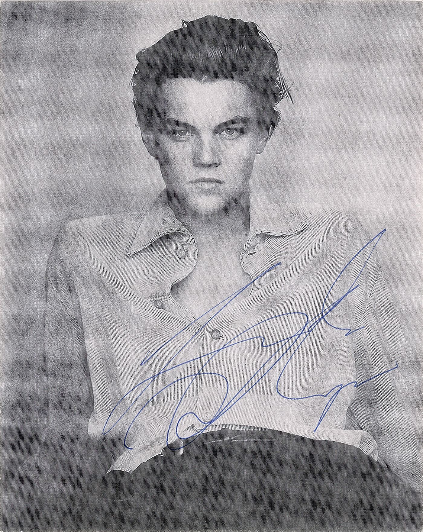 Handsome 4.5 x 5.75 cardstock photo of the young DiCaprio, signed in blue ballpoint. In fine condition, with a JSA label affixed to the reverse. Accompanied by a certificate of authenticity from JSA.