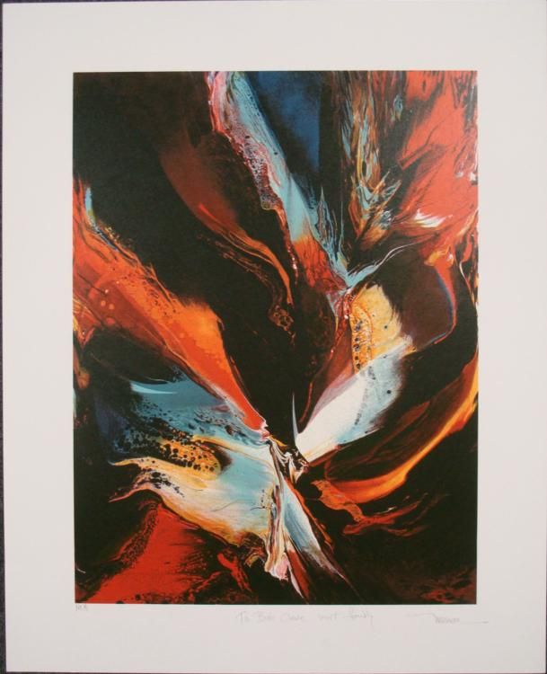 Artist: Leonardo NiermanTitle: Poems of Fire II - FirebirdMedium: Lithograph print on paperSignature: Signed by artist, lower rightEdition: Numbered Hors Commerce proof, marked 1/5, lower leftDedication: To Bob Chase, most fondly * Image size: 22 1/2" x 17"Condition: ExcellentBiography * Leonardo Nierman's (1932- ) paintings vibrantly come to life as they capture the * intensity and spontaneity of the dynamic forces that rule both nature * and the cosmos. With swirling whirlpools of color, darting flame-like * wisps, and brilliant hues as dazzling as a sun, they are dramatic in * their representation of that which is unchallenged, though perhaps not * quite understood. * * *Retrieved from: http://www.rogallery.com/Nierman_Leonardo/nierman-biography.htm * *