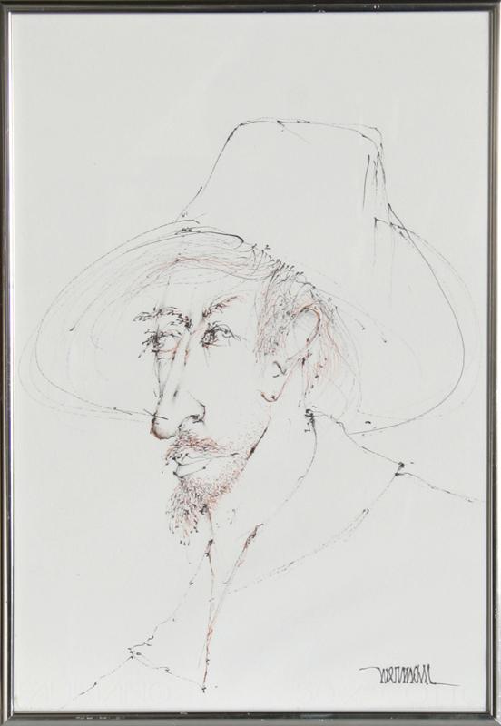 Leonardo Nierman, Self-Portrait 2, Ink Drawing