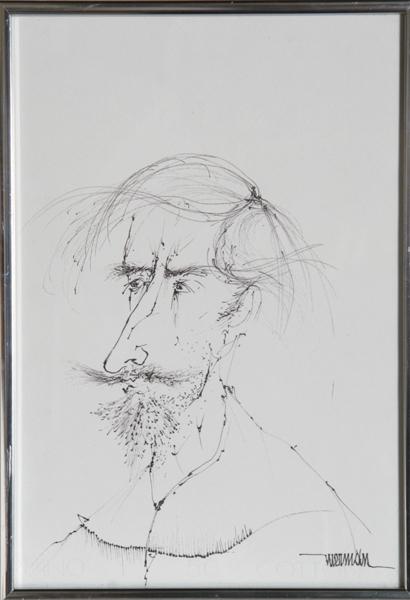 Leonardo Nierman, Self-Portrait 3, Ink Drawing
