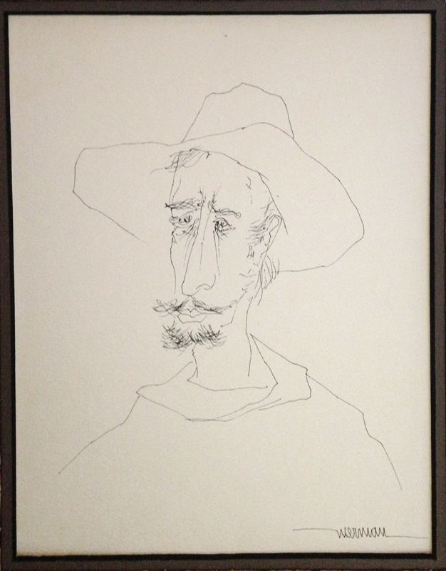 Leonardo Nierman, Self Portrait with Hat, Ink Drawing