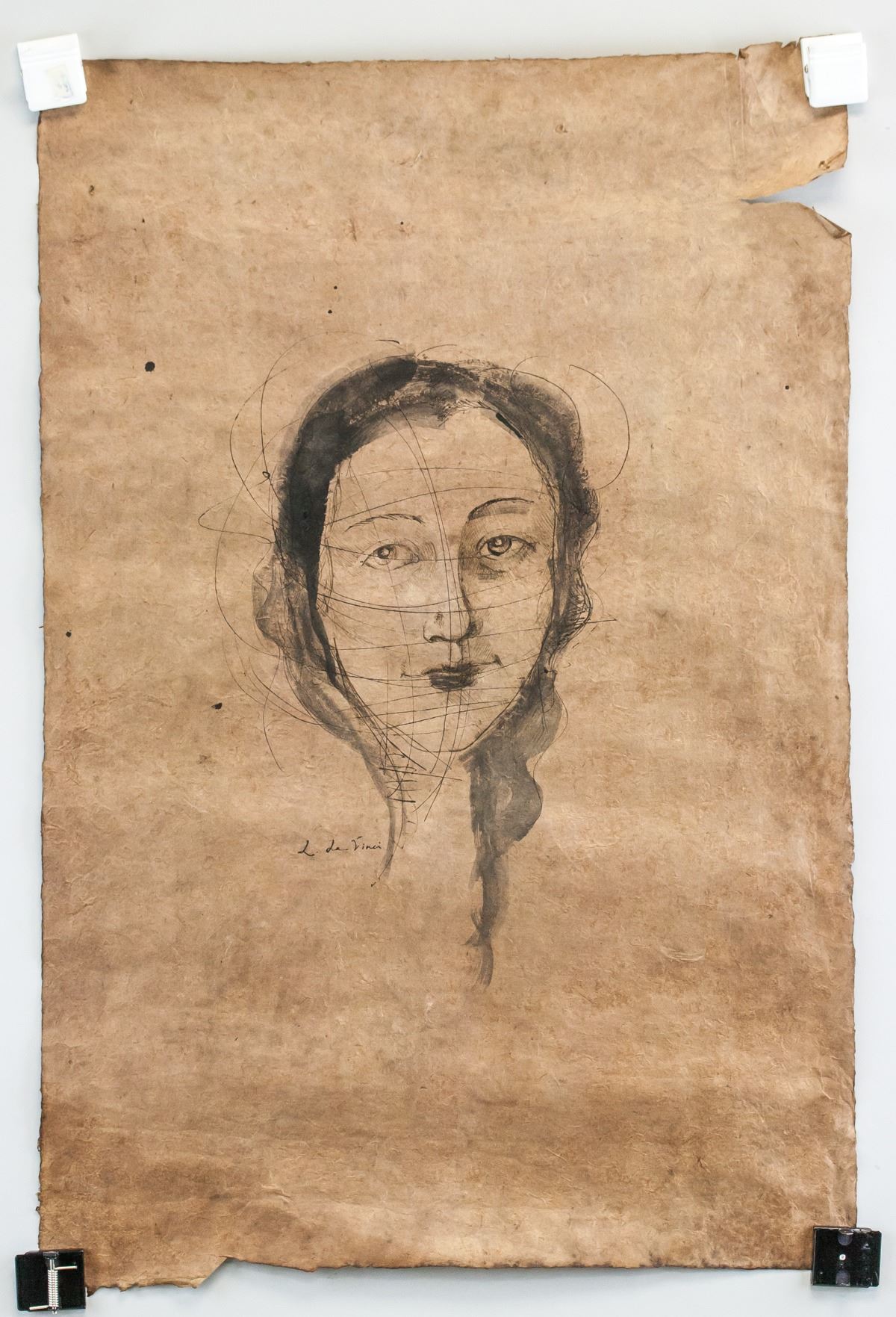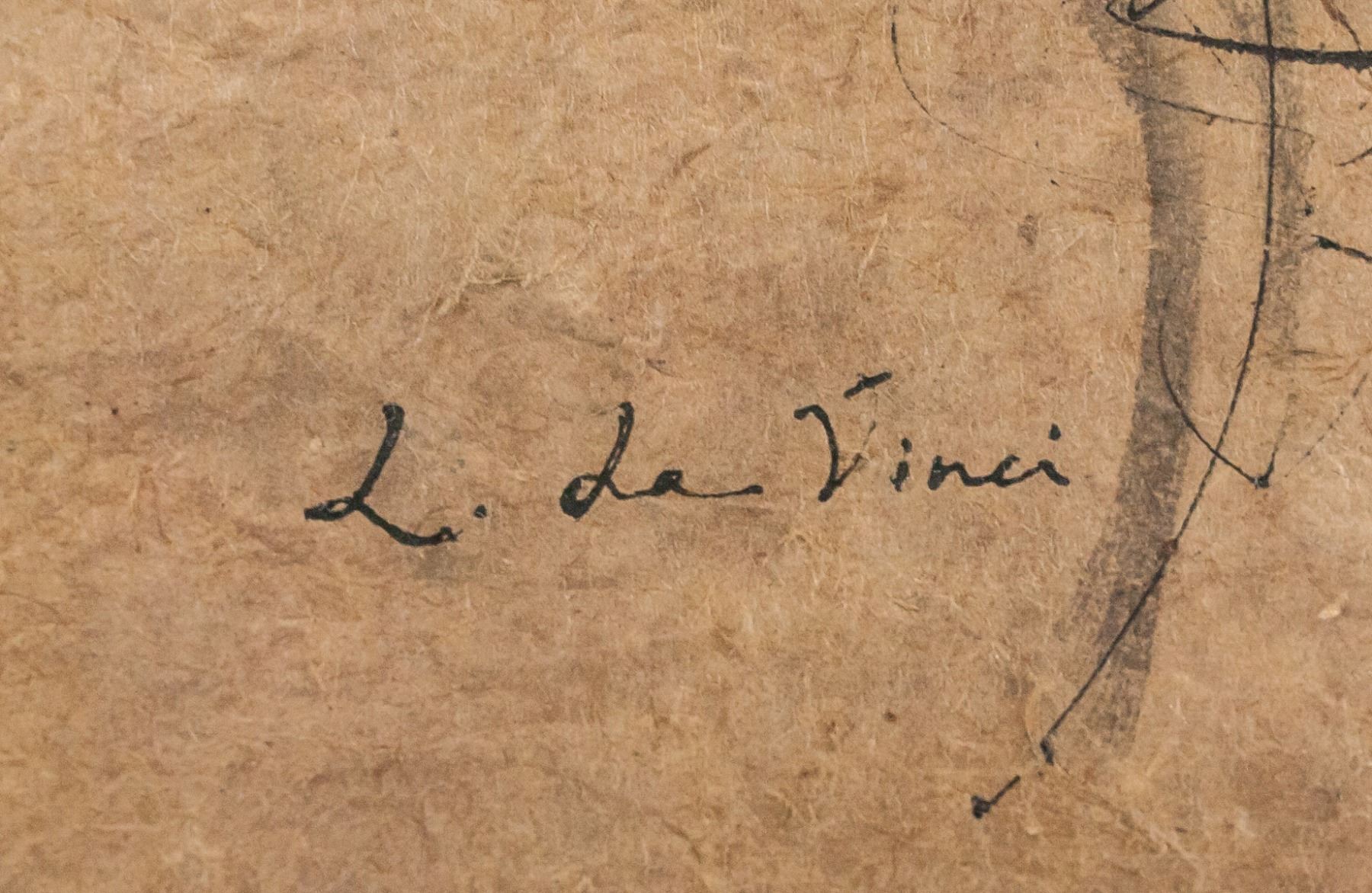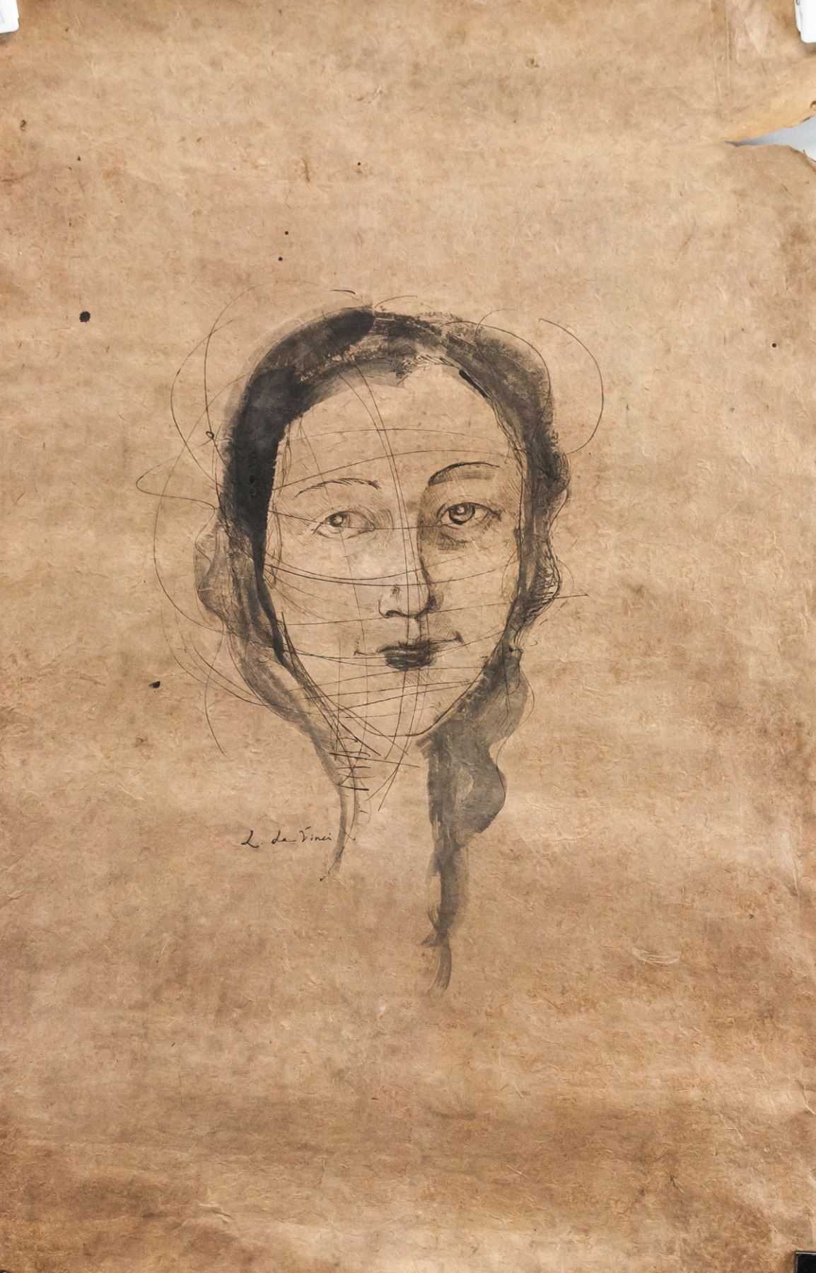 Ink on paper. Featuring portrait sketch of a woman. Signed "L. da Vinic" beneath the image. Label affixed to verso reads "Leonard da Vinci". Stamped with "TO Louis Berger PARIS" on verso. Attributed to Leonardo da Vinci (1452-1519, Italian). 75 x 50 cm (29.5 x 19.75 in). Provenance: This lot carries limited provenance from a Southern Italian estate