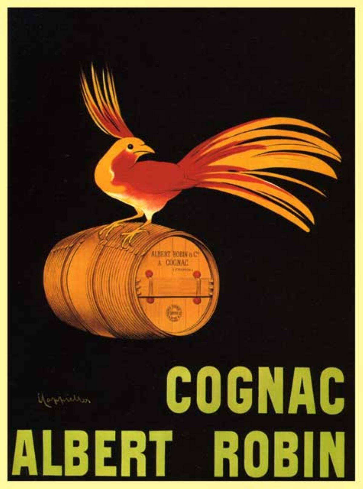 Artist: Leonette Cappiello - Title: Cognac Robin - Medium: Fine Art Reproduction Giclee on Canvas - Image Size: Approximately 20 inches x 14.75 inches - Unframed on Unstretched Canvas - Biography: Leonetto Cappiello (9 April 1875 - 2 February 1942) was an Italian and French poster art designer and painter, who mainly lived and worked in Paris. He is now often called 'the father of modern advertising' because of his innovation in poster design.