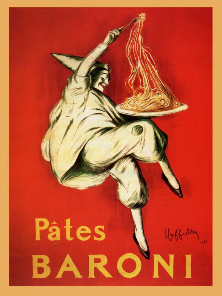 Artist: Leonetto Cappiello Title: Pates Baroni Medium: Fine Art Reproduction Giclee on Canvas Image Size: Approximately 20 inches x 15 inches Framed: Unframed on Unstretched Canvas Biography: Leonetto Cappiello (9 April 1875 - 2 February 1942) was an Italian and French poster art designer and painter, who mainly lived and worked in Paris. He is now often called 'the father of modern advertising' because of his innovation in poster design.