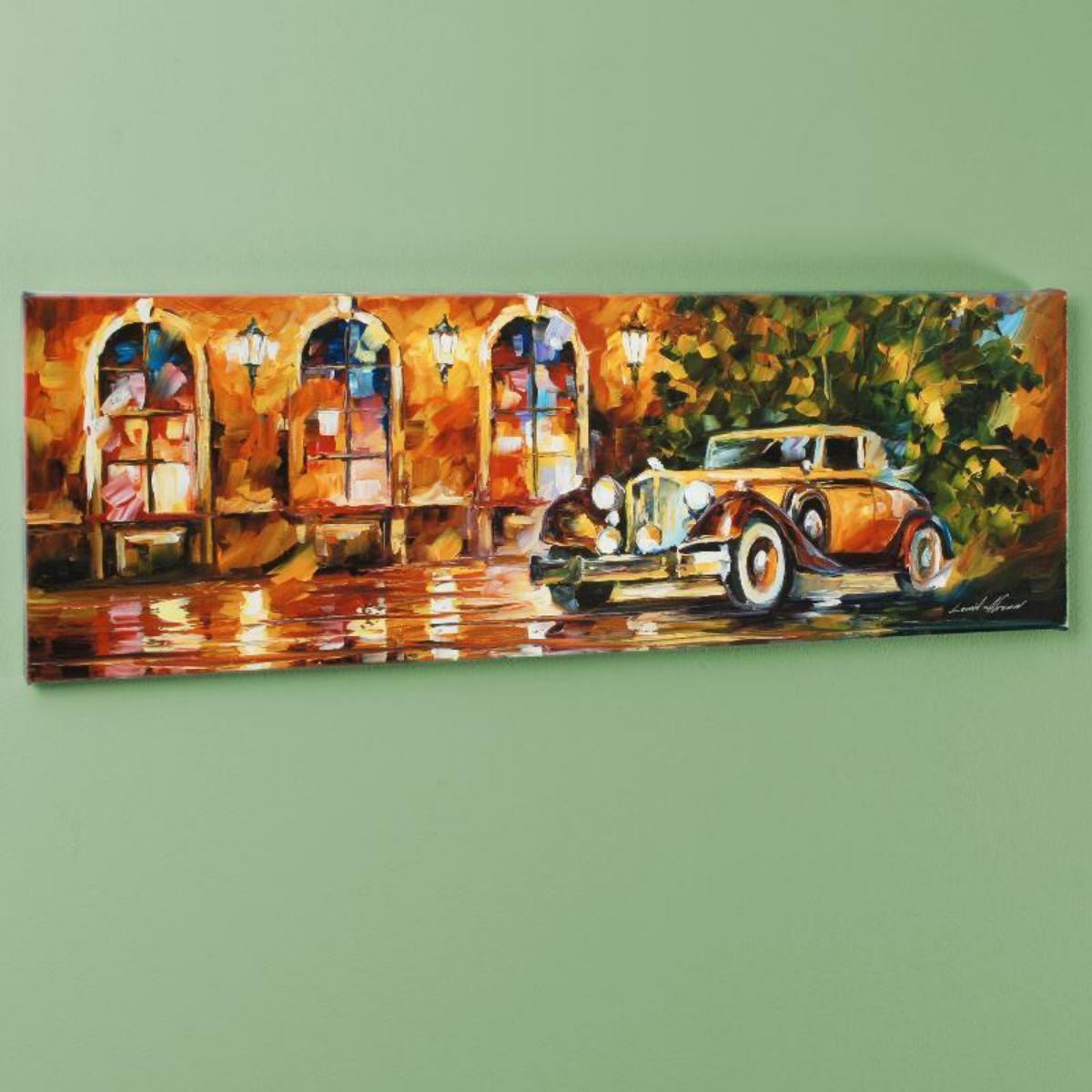 Leonid Afremov's masterful use of color and texture make his paintings unique collectibles that are sure to brighten any wall. "1934 Packard" is a limited edition giclee on canvas. The piece is numbered and bears the artist's authorized signature. This piece comes gallery wrapped. Includes Certificate of Authenticity! Measures approx. 35" x 12" (image). Reference #: 169700.