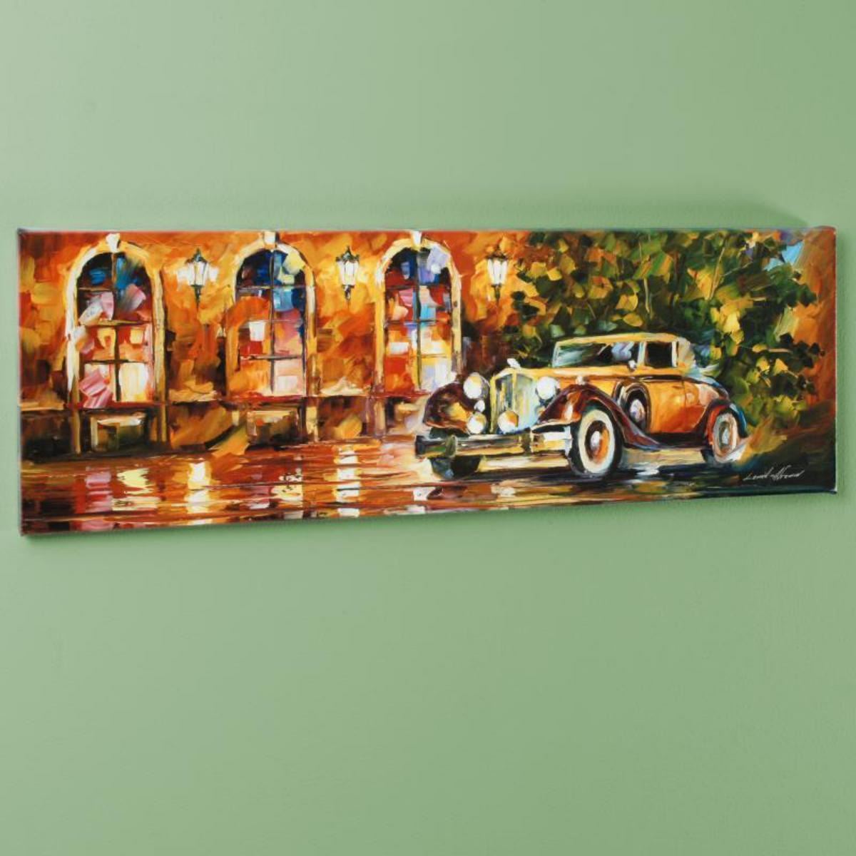 Leonid Afremov's (1955-2019) masterful use of color and texture make his paintings unique collectibles that are sure to brighten any wall. "1934 Packard" is a limited edition giclee on canvas. The piece is numbered and bears the artist's authorized signature. This piece comes gallery wrapped. Includes Letter of Authenticity. Measures approx. 35" x 12" (image). This item requires special handling and may have a longer than usual turnaround. Reference #: 237059.