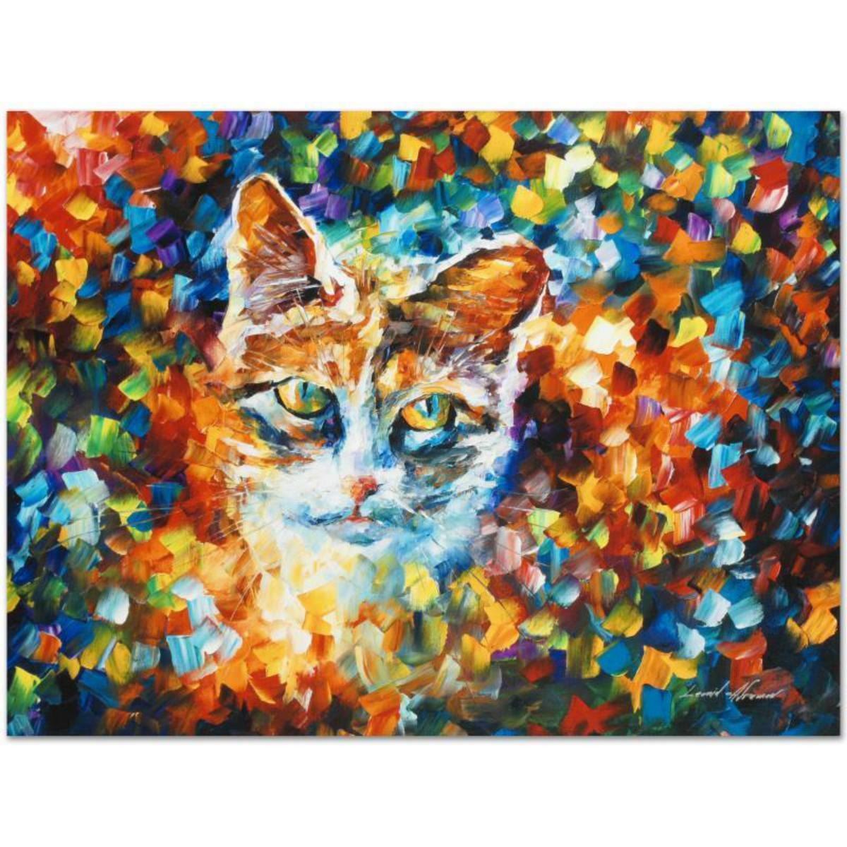 Leonid Afremov's (1955-2019) masterful use of color and texture make his paintings unique collectibles that are sure to brighten any wall. "Bright Eyes" is a limited edition giclee on canvas. The piece is numbered and bears the artist's authorized signature. This piece comes gallery wrapped. Includes Letter of Authenticity. Measures approx. 24" x 18" (image). This item requires special handling and may have a longer than usual turnaround. Reference #: 237044.