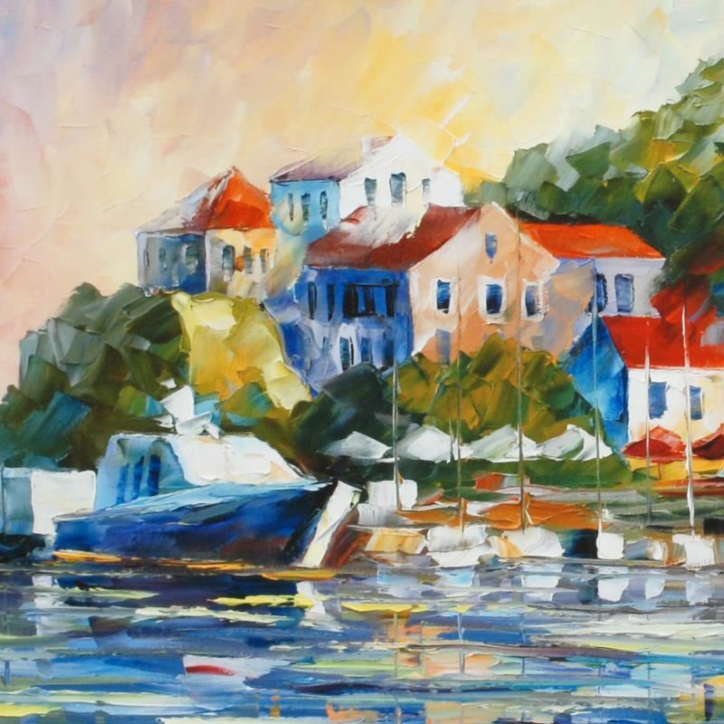 Leonid Afremov's (1955-2019) masterful use of color and texture make his paintings unique collectibles that are sure to brighten any wall. "Mediterranean Noon" is a limited edition giclee on canvas. The piece is numbered and bears the artist's authorized signature. This piece comes gallery wrapped. Includes Letter of Authenticity. Measures approx. 27.5" x 16" (image).