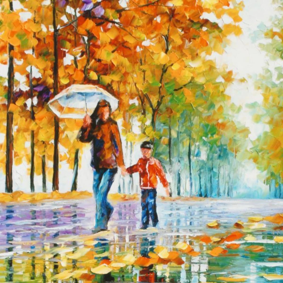 Leonid Afremov (1955-2019) "Stroll in an Autumn Park" Limited Edition Giclee on Canvas, Numbered and