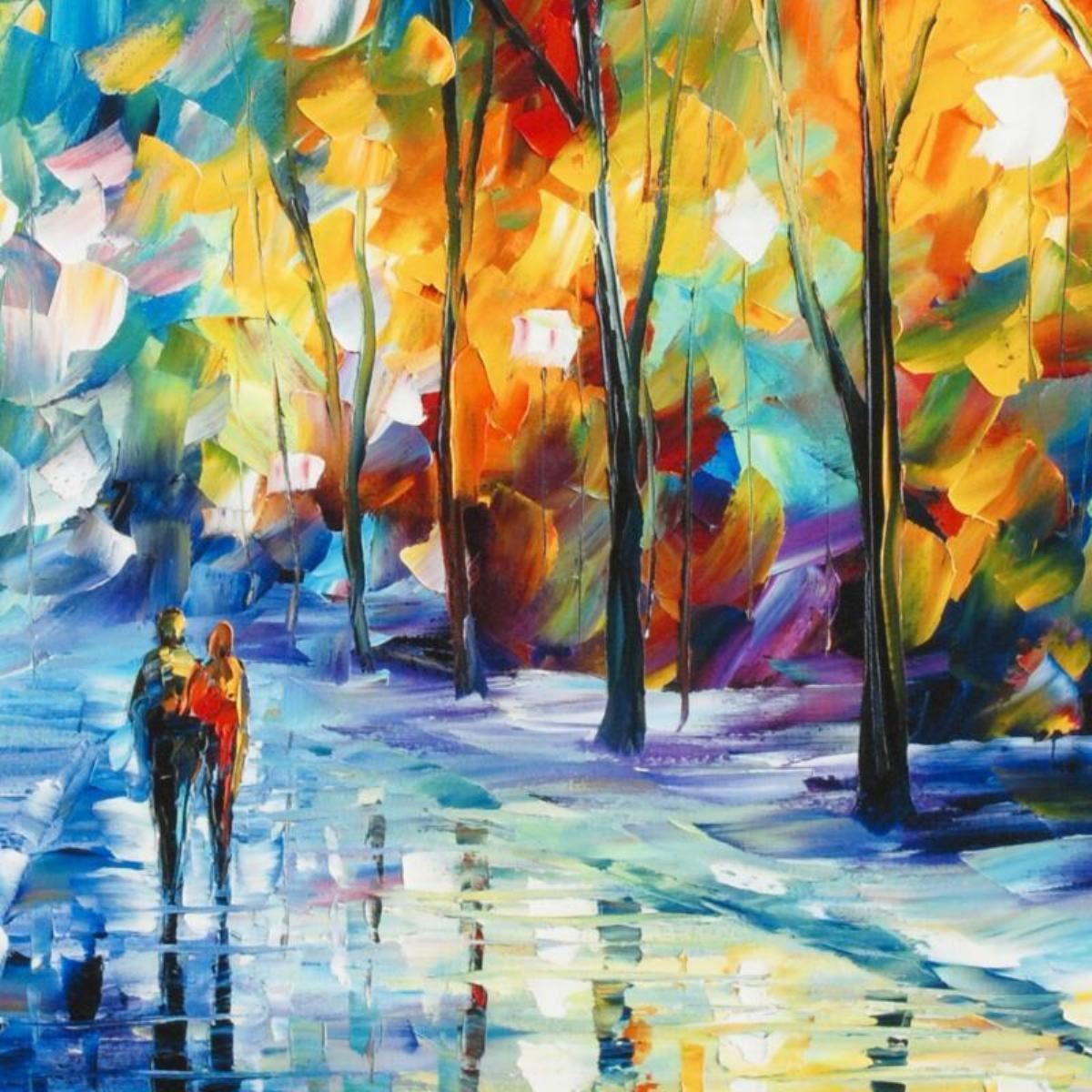 Leonid Afremov's (1955-2019) masterful use of color and texture make his paintings unique collectibles that are sure to brighten any wall. "Under the Gaze" is a limited edition giclee on canvas. The piece is numbered and bears the artist's authorized signature. This piece comes gallery wrapped. Includes Letter of Authenticity. Measures approx. 18" x 24" (image). This item requires special handling and may have a longer than usual turnaround.