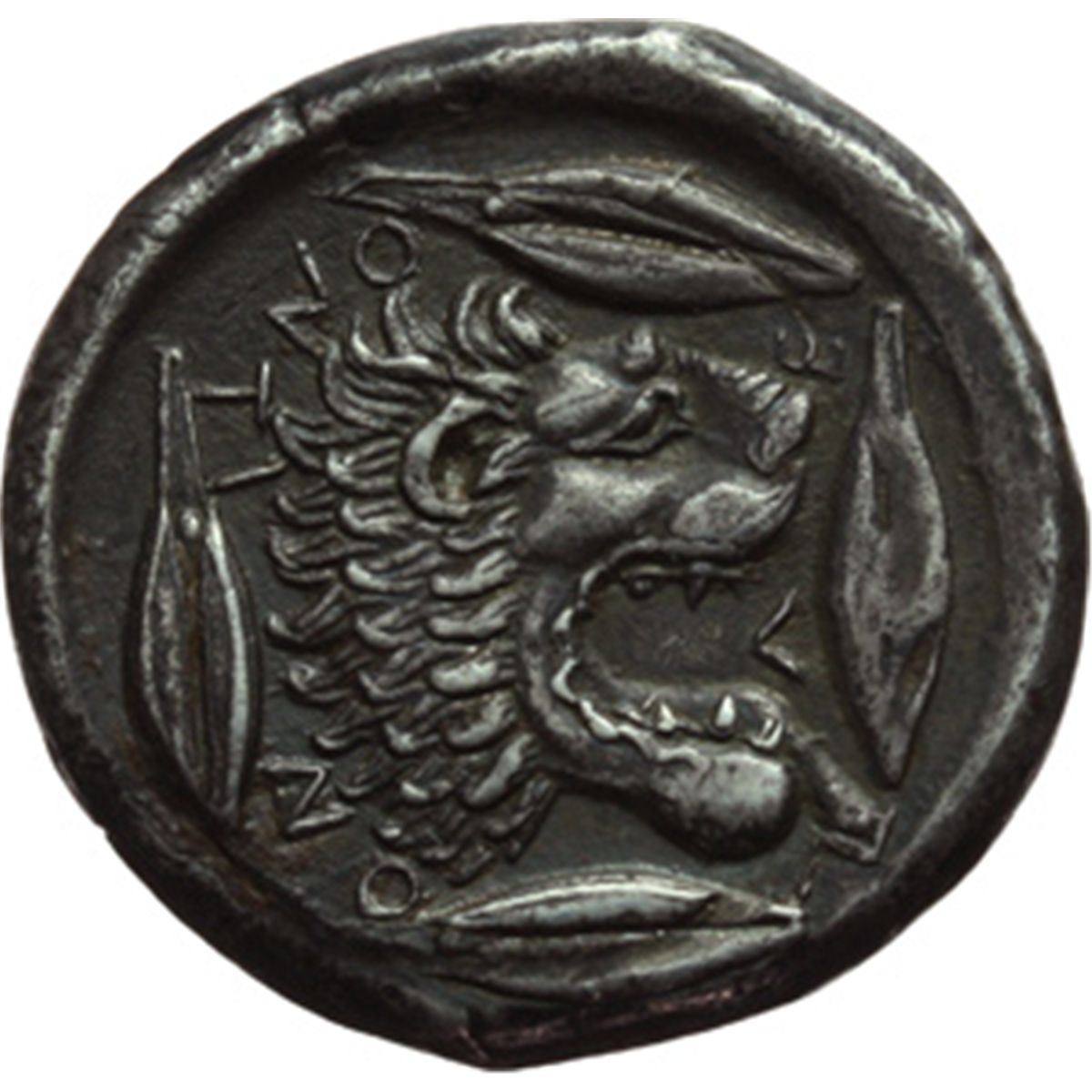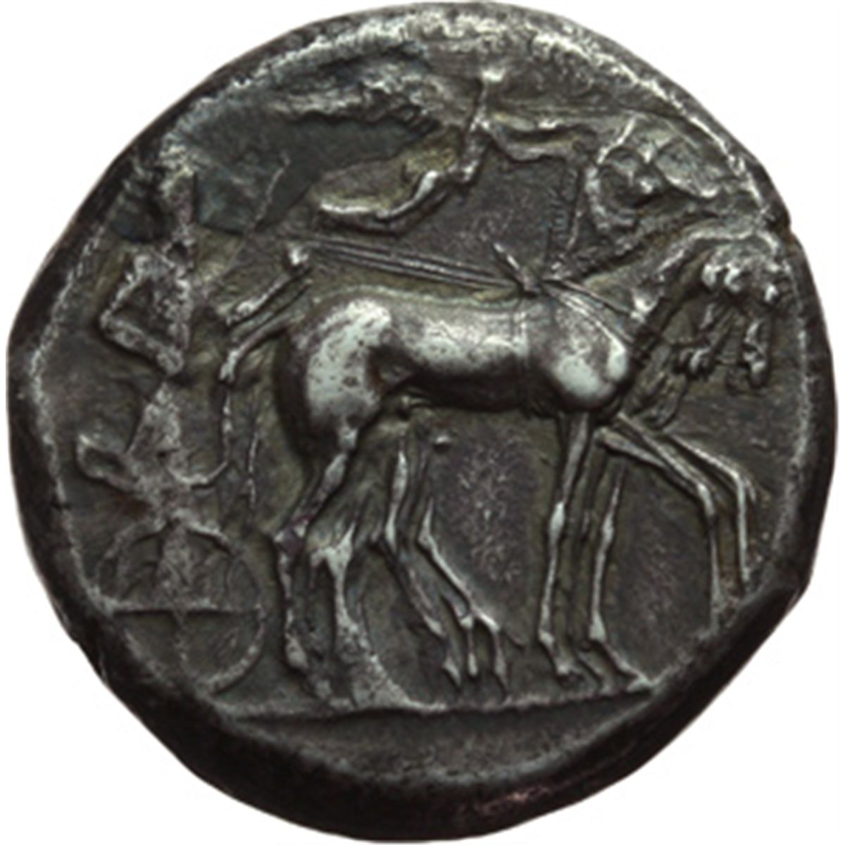 Mondo Greco. Sicilia. Leontini. Tetradracma, 475-466 a.C. D/ Quadriga al passo a destra, condotta da auriga che indossa lungo chiton. Sopra, Nike vola a destra e incorona i cavalli. R/ ΛEONTINON. Testa di leone con le fauci aperte a destra. Intorno, quattro chicchi d'orzo. SNG ANS 200. AG. g. 16.79 mm. 24.00 R. Uno splendido esemplare, perfettamente centrato, con delicata patina di monetiere. qSPL.