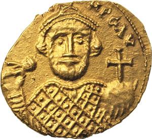 Impero Bizantino. Leonzio (695-698). Solido, Siracusa. D/ [D LEON] PE.AV. Busto di fronte che indossa corona e loros e tiene akakia e globo crucigero. R/ VICTORIA (con A allungata) AVGY Γ. Croce potenziata su tre gradini. Sotto, CONOB. D.O. 12. R.-. Sear 1339. AU. g. 4.12 mm. 20.00 R. Graffito al R/, altrimenti SPL. Molto raro.