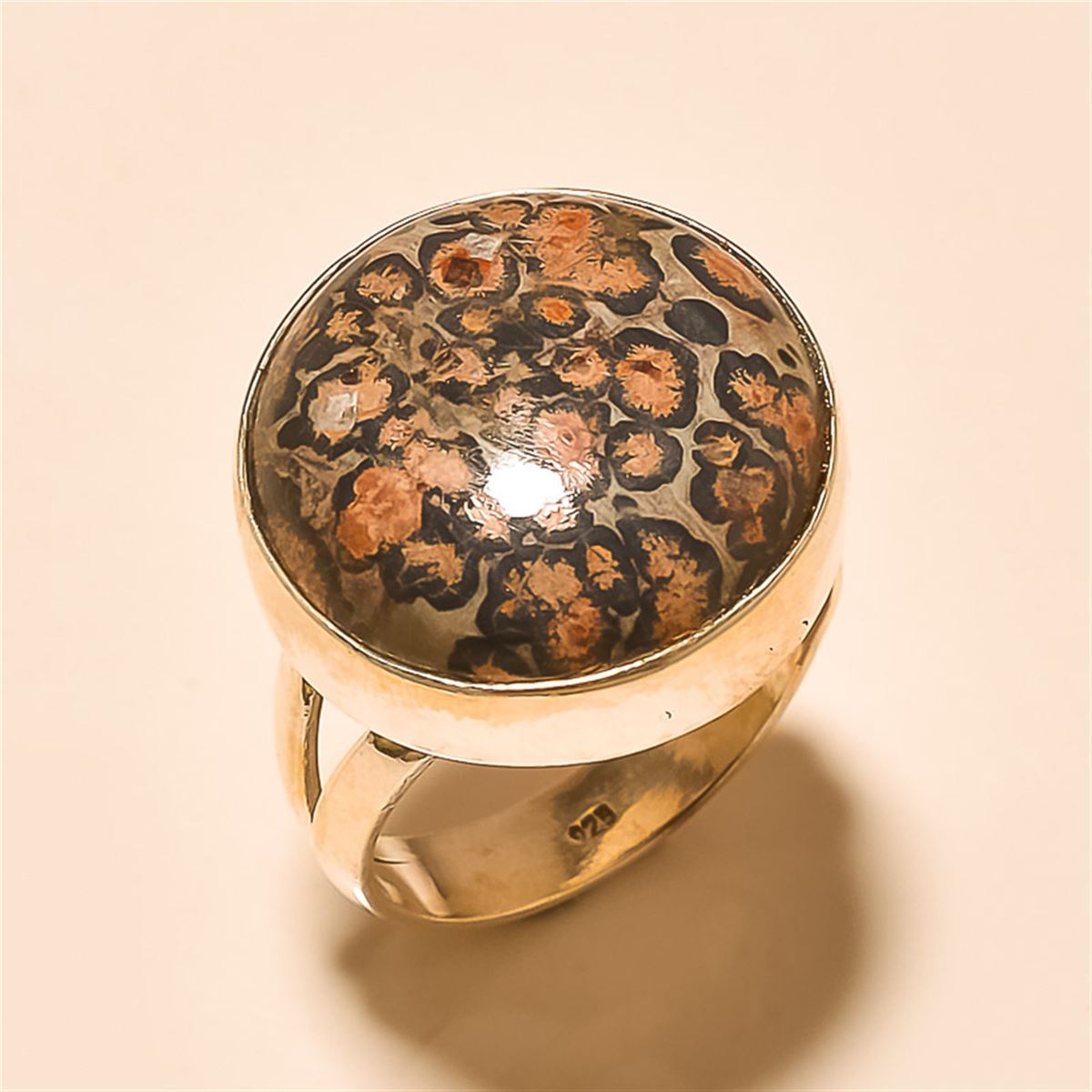 Leopard Jasper RING Solid Sterling Silver Length:0.75inch Weight:9gram #R-175