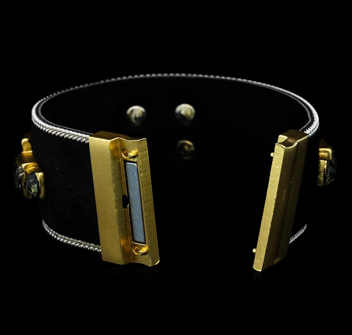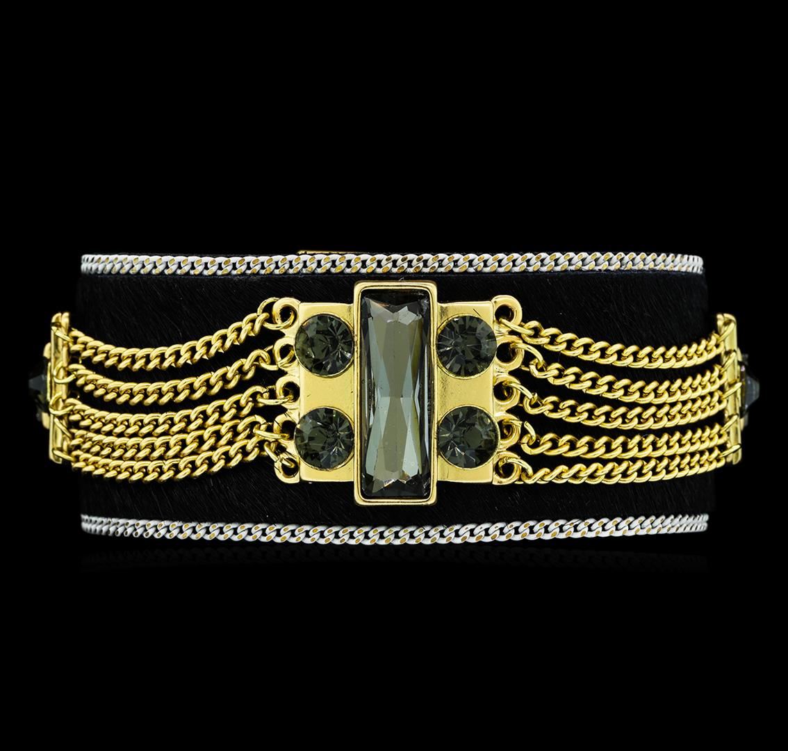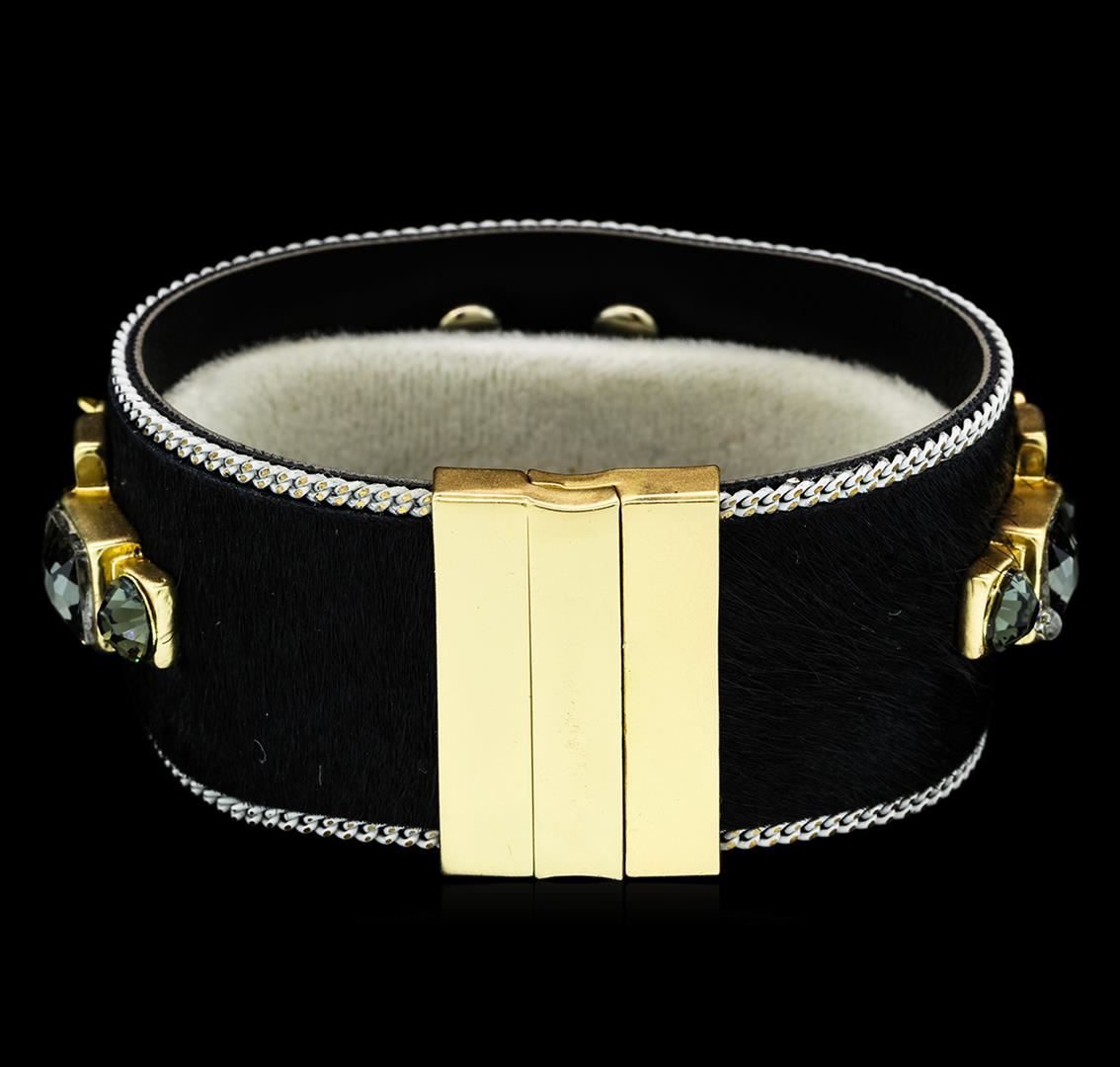 High end designer jewelry. Leopard Skin Crystal Bracelet - Gold Plated. Gold Pltd Magnetic Clasp. Brown/ Gold. 7.25inches.
