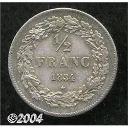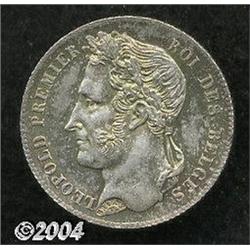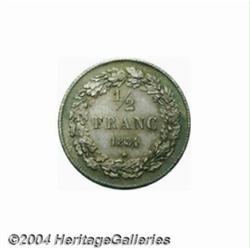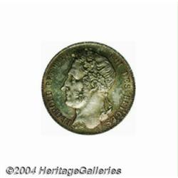Leopold I 1/2 franc 1834, Bust left/Date and value, Dup-94, KM6, toned Gem Uncirculated.From the Marshall Frumer Collection. Important notice: Heritage usually auctions material at the rate of 200-250 lots per hour. On some occasions eBay Live bid software or the Internet may not be able to keep up with the pace of the auction. We recommend placing a realistic absentee bid now as insurance to avoid disappointment. Occasionally the auctioneer may eliminate or reject an eBay Live bid, and the auctioneer may also reopen a lot after the close of the eBay live bidding (usually because we missed an audience bid), and may reject your bid even if it shows you as the winning bidder. By bidding via eBay Live, you agree that Heritage may award the lot to another bidder at its sole discretion under the circumstances described above or any other reasonable circumstances. Also please note that all Heritage lots purchased through eBay Live carry a 20% Buyer's Premium. Please make sure you read the Terms and Conditions before you bid.