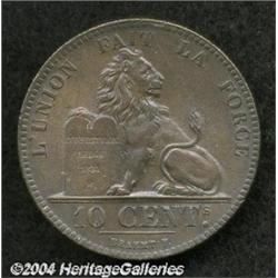 Leopold I 10 centimes 1832 with period, DUP-19, Bogaert-19A, KM2.1, iridescent brown Uncirculated.From the Marshall Frumer Collection. Important notice: Heritage usually auctions material at the rate of 200-250 lots per hour. On some occasions eBay Live bid software or the Internet may not be able to keep up with the pace of the auction. We recommend placing a realistic absentee bid now as insurance to avoid disappointment. Occasionally the auctioneer may eliminate or reject an eBay Live bid, and the auctioneer may also reopen a lot after the close of the eBay live bidding (usually because we missed an audience bid), and may reject your bid even if it shows you as the winning bidder. By bidding via eBay Live, you agree that Heritage may award the lot to another bidder at its sole discretion under the circumstances described above or any other reasonable circumstances. Also please note that all Heritage lots purchased through eBay Live carry a 20% Buyer's Premium. Please make sure you read the Terms and Conditions before you bid.