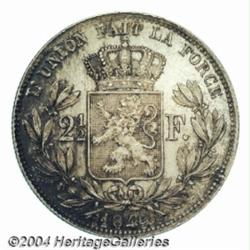 Leopold I 2-1/2 francs 1849 Large Head, Large head left/Crowned arms, Dup-413, KM12, toned, Choice Proof.From the Marshall Frumer Collection. Important notice: Heritage usually auctions material at the rate of 200-250 lots per hour. On some occasions eBay Live bid software or the Internet may not be able to keep up with the pace of the auction. We recommend placing a realistic absentee bid now as insurance to avoid disappointment. Occasionally the auctioneer may eliminate or reject an eBay Live bid, and the auctioneer may also reopen a lot after the close of the eBay live bidding (usually because we missed an audience bid), and may reject your bid even if it shows you as the winning bidder. By bidding via eBay Live, you agree that Heritage may award the lot to another bidder at its sole discretion under the circumstances described above or any other reasonable circumstances. Also please note that all Heritage lots purchased through eBay Live carry a 20% Buyer's Premium. Please make sure you read the Terms and Conditions before you bid.