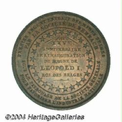 Leopold I 25 Anniversary of the Inauguration of the King, Membach Mines Commemorative Medallic 5 centimes, Dup-581, lustrous Uncirculated with some spotting. Rare!From the Marshall Frumer Collection. Important notice: Heritage usually auctions material at the rate of 200-250 lots per hour. On some occasions eBay Live bid software or the Internet may not be able to keep up with the pace of the auction. We recommend placing a realistic absentee bid now as insurance to avoid disappointment. Occasionally the auctioneer may eliminate or reject an eBay Live bid, and the auctioneer may also reopen a lot after the close of the eBay live bidding (usually because we missed an audience bid), and may reject your bid even if it shows you as the winning bidder. By bidding via eBay Live, you agree that Heritage may award the lot to another bidder at its sole discretion under the circumstances described above or any other reasonable circumstances. Also please note that all Heritage lots purchased through eBay Live carry a 20% Buyer's Premium. Please make sure you read the Terms and Conditions before you bid.