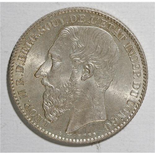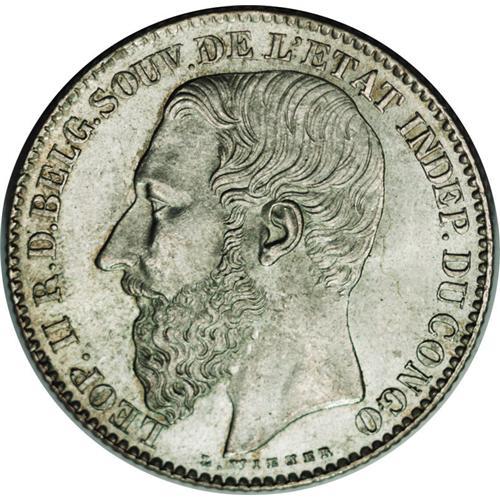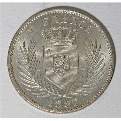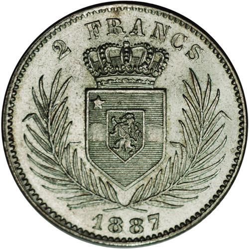 <B>Leopold II 2 Francs 1887, </B></I>KM7, choice lightly toned UNC, a very pleasing example.<BR><I>From the Louis E. Eliasberg, Sr. Collection</B></I><BR><BR><b>Shipping:</b> Coin/Currency (<a target="_blank" href="http://www.heritageauctions.com/common/shipping.php">view shipping information</a>)