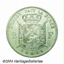Leopold II 2 francs 1866, without cross on crown, Bust left/Crowned arms, Dup-1036, KM30.2, lightly cleaned VF/XF.From the Marshall Frumer Collection. Important notice: Heritage usually auctions material at the rate of 200-250 lots per hour. On some occasions eBay Live bid software or the Internet may not be able to keep up with the pace of the auction. We recommend placing a realistic absentee bid now as insurance to avoid disappointment. Occasionally the auctioneer may eliminate or reject an eBay Live bid, and the auctioneer may also reopen a lot after the close of the eBay live bidding (usually because we missed an audience bid), and may reject your bid even if it shows you as the winning bidder. By bidding via eBay Live, you agree that Heritage may award the lot to another bidder at its sole discretion under the circumstances described above or any other reasonable circumstances. Also please note that all Heritage lots purchased through eBay Live carry a 20% Buyer's Premium. Please make sure you read the Terms and Conditions before you bid.