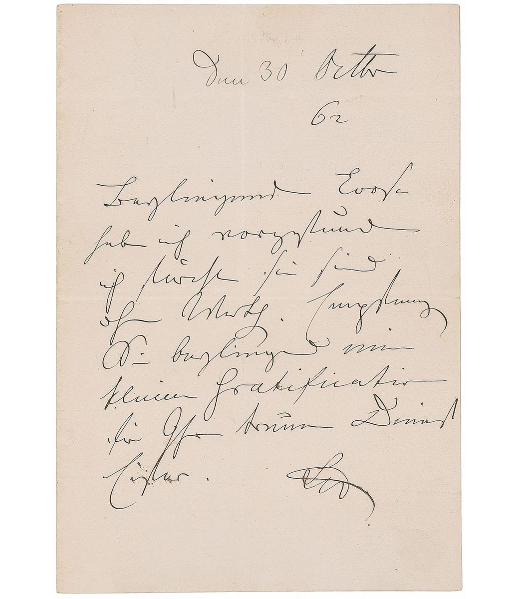 King of Belgium following its independence from the Netherlands (1790–1865). ALS in German, signed “Leo,” one page, 5 x 7.25, October 30, 1862. Untranslated letter thanking a business associate. In fine condition, with intersecting folds.