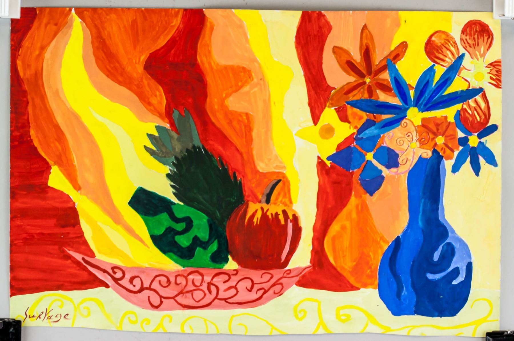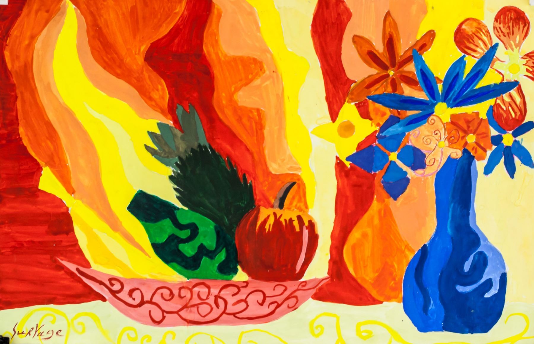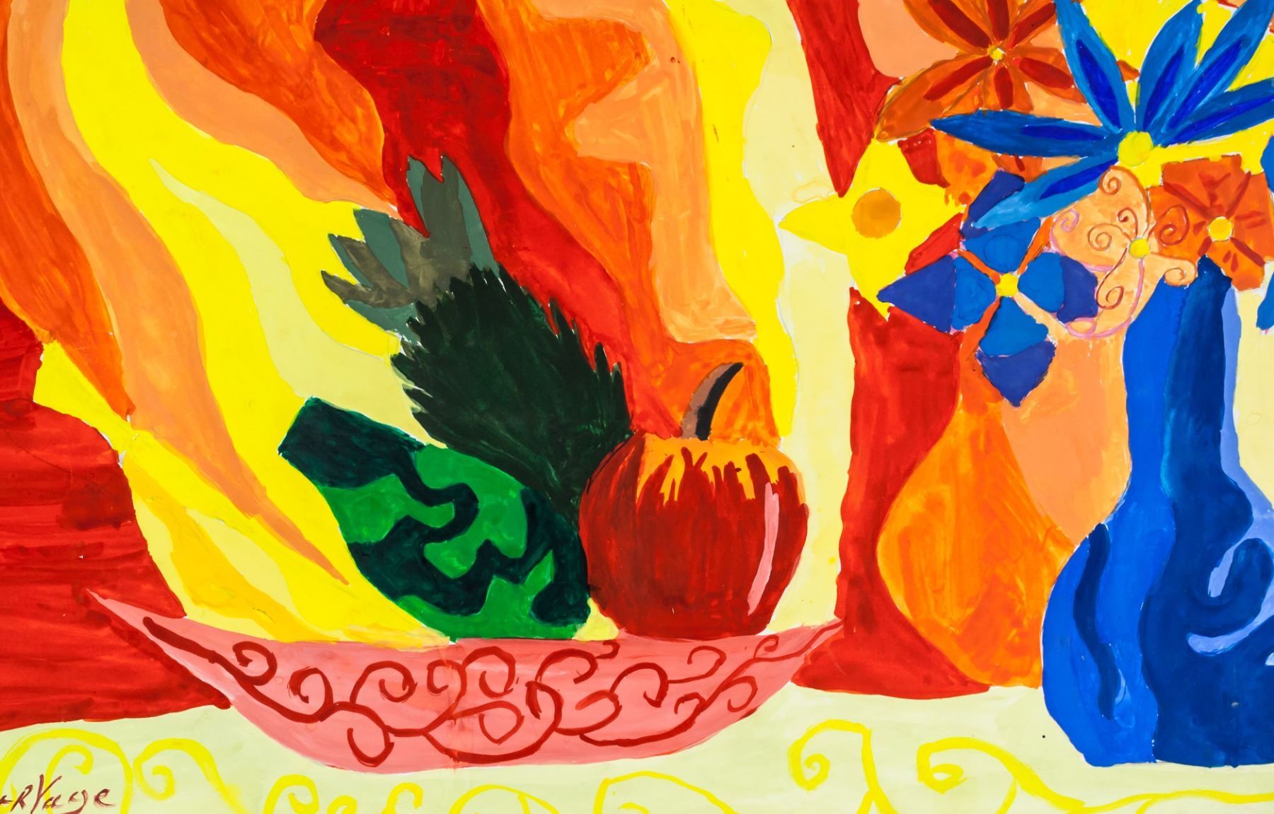 Mixed media on paper. Featuring a cubist still life of fruits, vases and bowls. Signed SuRVage on the lower left corner. Attributed to Leopold Survage (1879-1968, French). 32 x 49 cm (12.6 x 19.3 inches). PROVENANCE: Southern Ontario estate