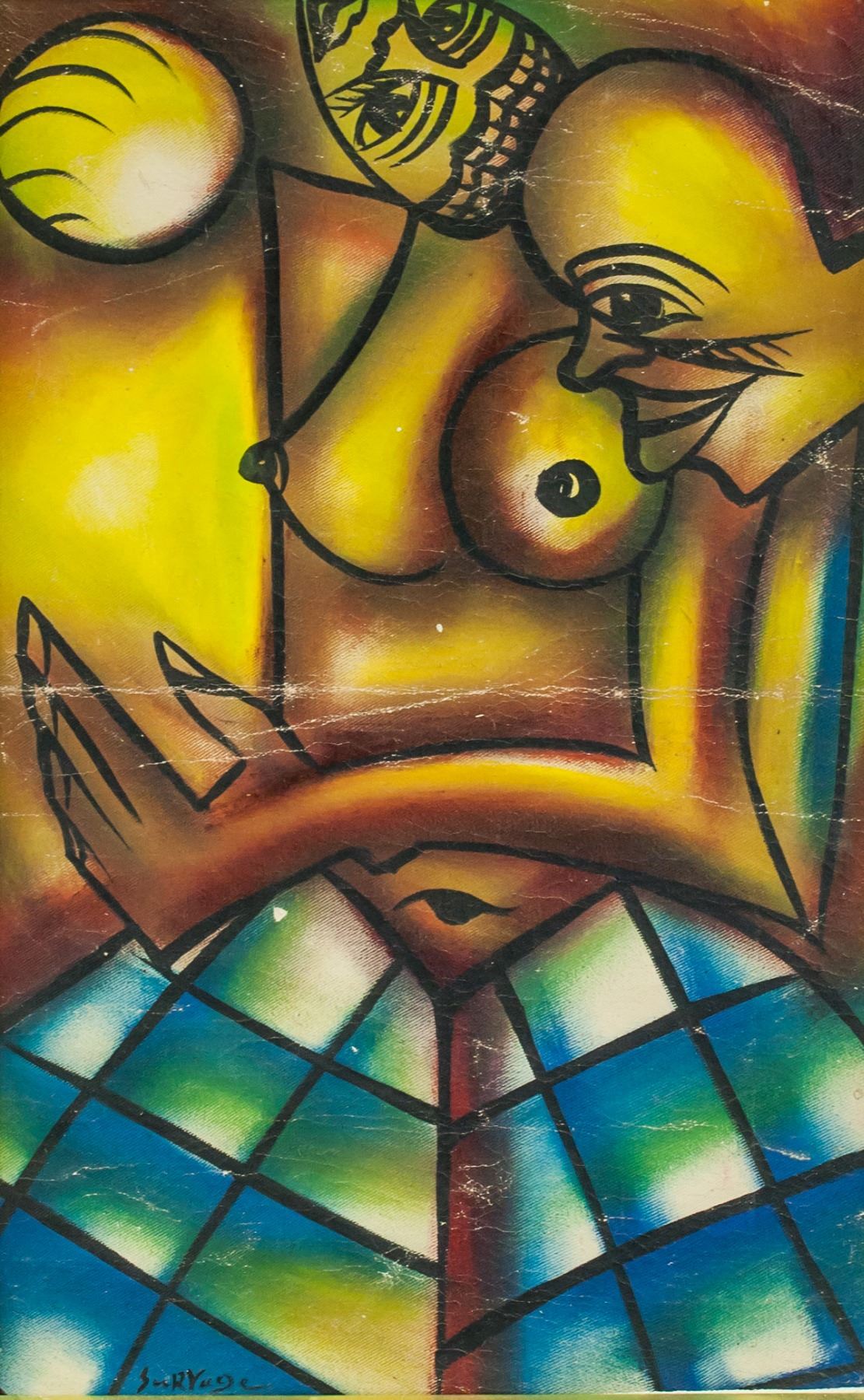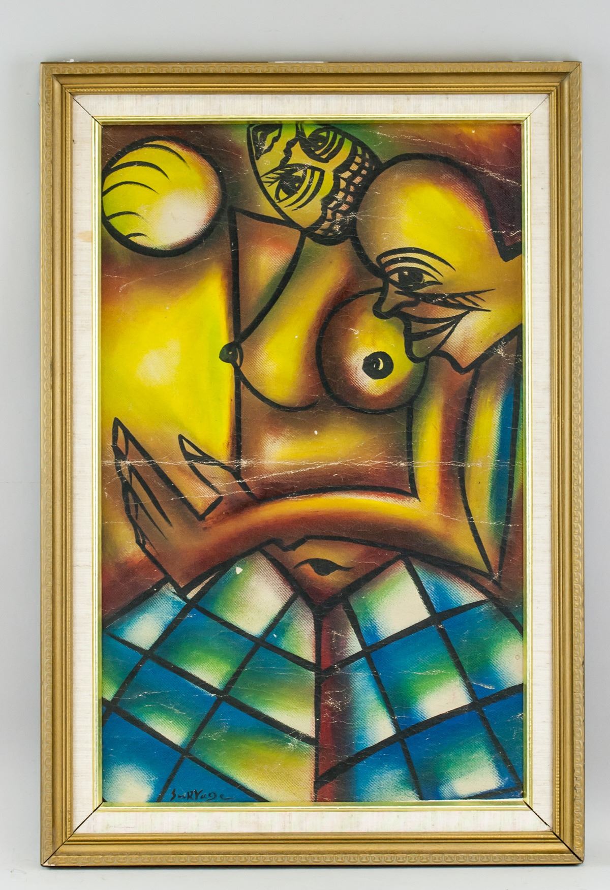 Oil on canvas, stretched and framed. Featuring a cubist portrait of nude. Signed SuRVage on the lower left corner. Attributed to Leopold Survage (1879-1968, French). 60.5 x 38 cm (24 x 15 inches). Framed size: 71 x 48 cm (28.0 x 18.9 inches). PROVENANCE: Southern Ontario estate