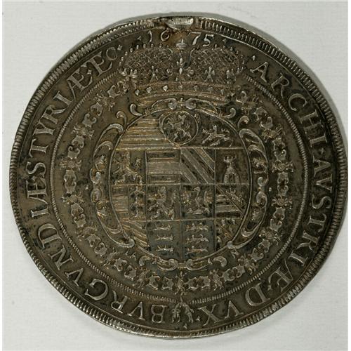 Leopold the Hogmouth Broad 2 Taler 1675 Graz, KM1269x,