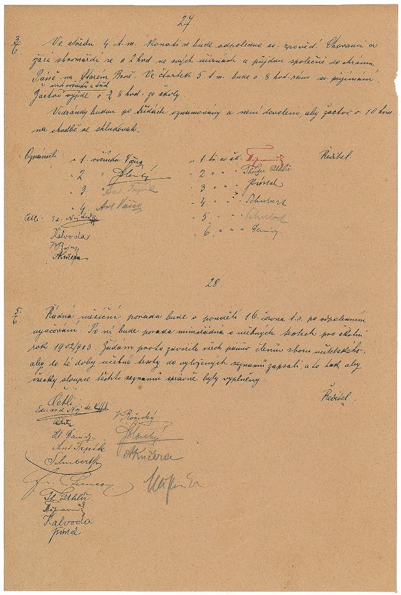 Czech composer, musical theorist, folklorist, publicist, and teacher (1854–1928) considered one of the most important opera composers of the first half of the 20th century. Manuscript DS in Czech, one page both sides, 9.25 x 14, no date. Untranslated document related to the Organ School in Brno signed three times by Janacek, once in ink and twice in pencil. In fine condition. In an effort to improve musical education Janacek established the Organ School in 1881, which evolved into the Brno Conservatory.