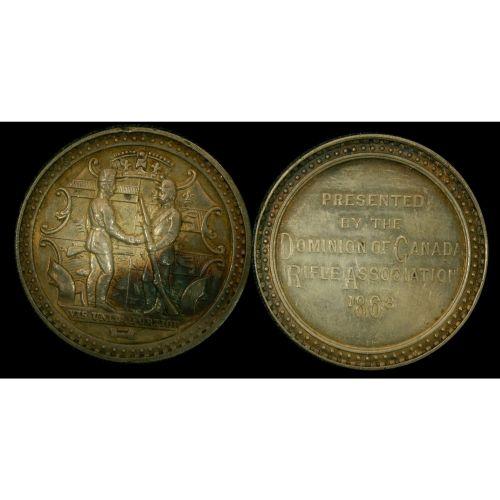 Leroux 1600 Obv,: Arms of Canada with two soldiers shaking hands, Rev,: Presented by the dominion of Canada,Rifle association, 1868,28mm Rarity 5, silver,