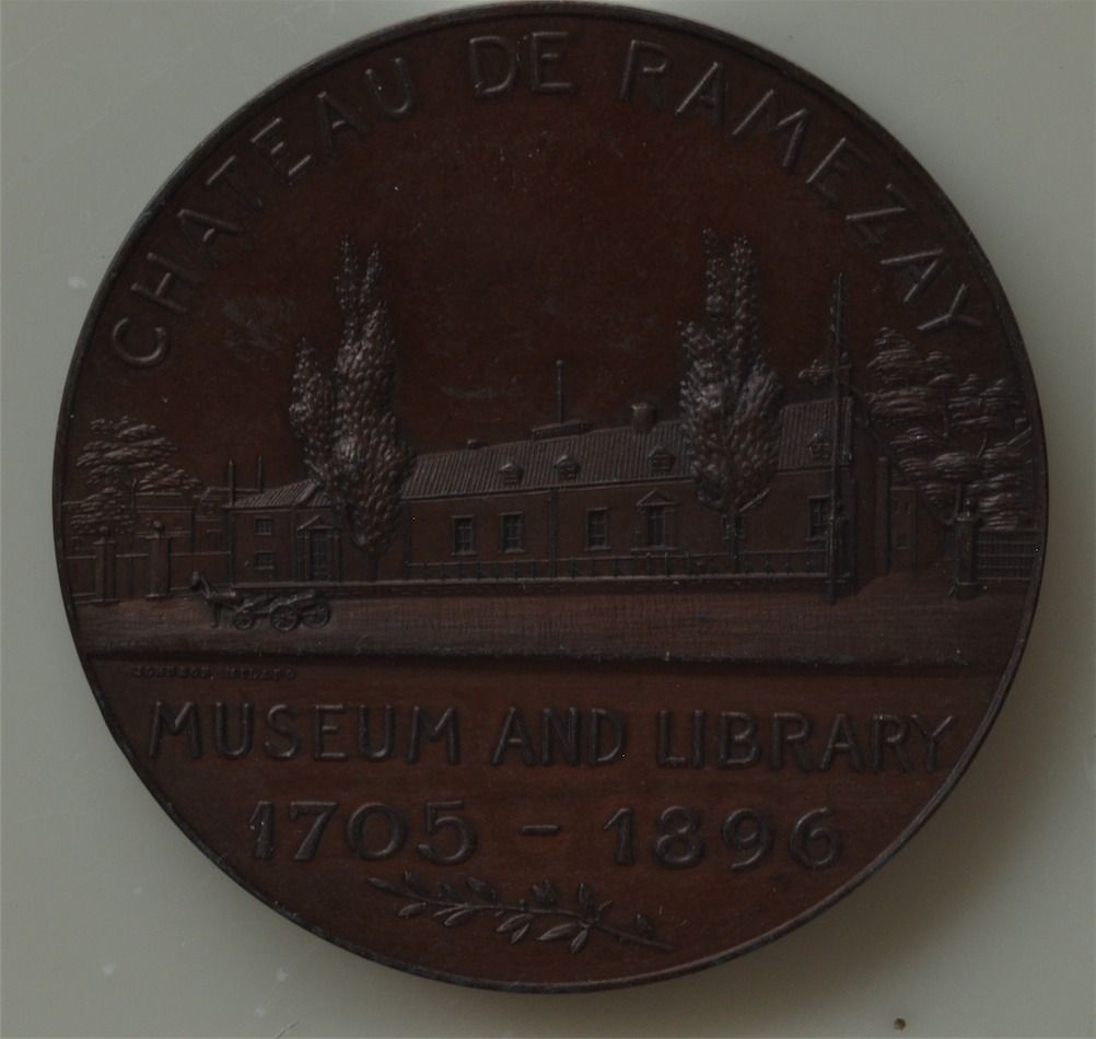 Leroux 1612c - BR 168 - Obv. Chateau de Ramezay /building/museaum and library/1705-1896. Rev. Civic library inaugurated by H.J. Tiffan - 1896. Cu, 50mm, UNC.