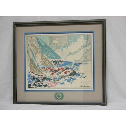 Leroy Neiman America's Cup Newport, Serigraph, Pencil signed lower right corner, Sept, 17, 64. Art 23 x 28 1/4, Custom Fram and Triple matted 36 1/2 x 41 1/2. Condition: no damage noted.