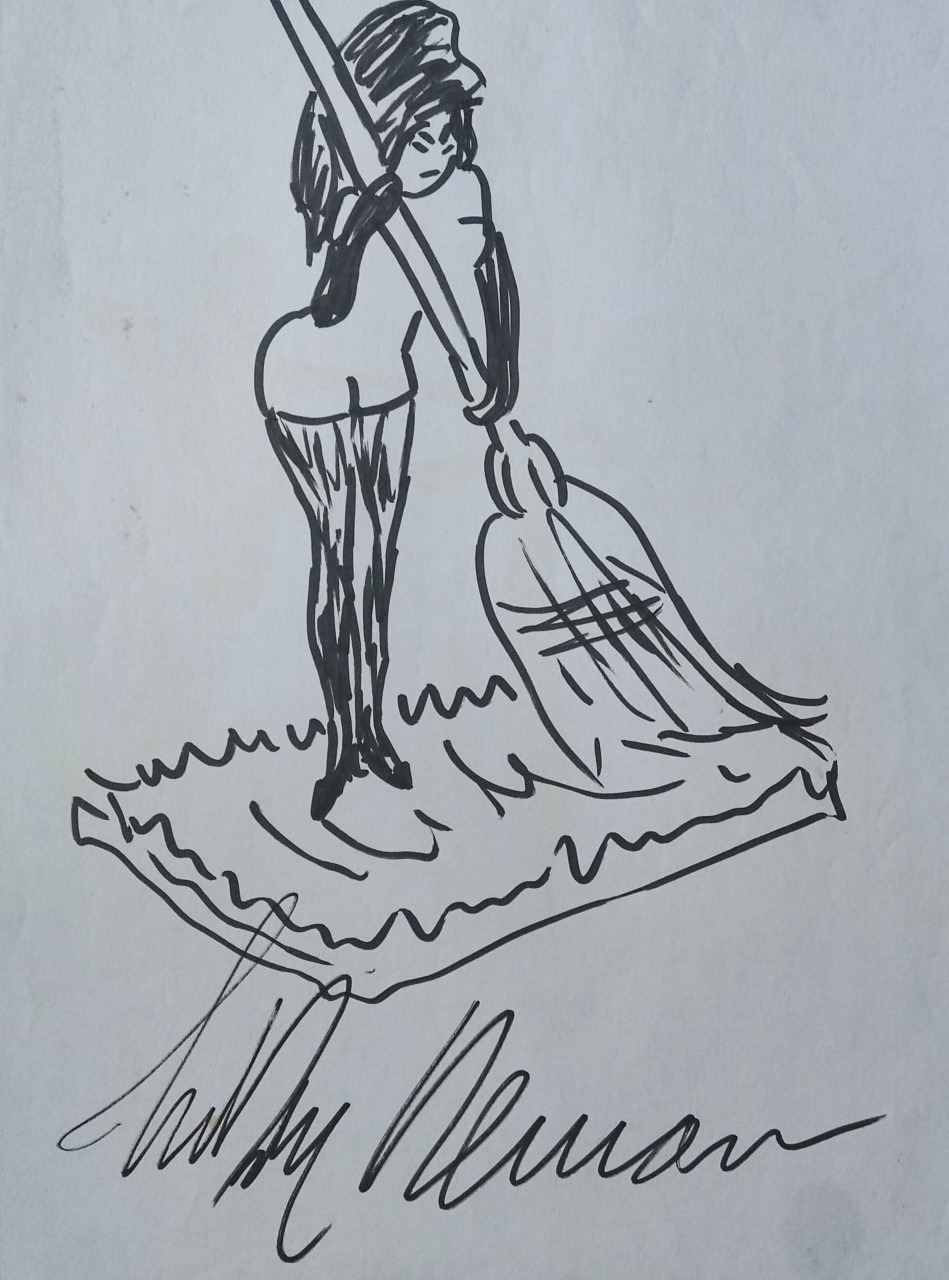 Femlin Sweeping hand drawn and signed by Leroy Neiman. They first appeared as a Cartoon for 'Playboy's Party Jokes', in Playboy. Image: 10.75x7.5 inches. Supplied with coa.