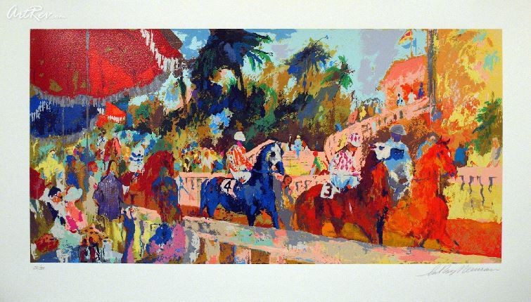 Leroy Neiman "LEAVING THE PADDOCK" Hand Signed and Numbered Limited Edition Serigraph Dimensions: 19.5 x 38 Inches (Note: Edition number recieved may differ from photo)