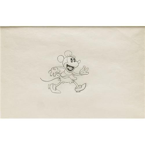 <B>Les Clark - Minnie Mouse Animation Production Drawing Original Art (Disney, early 1930s).</B></I> This lively rendering of the "slot-eyed" Minnie Mouse is from the collection of animator Les Clark, the first of Disney's "Nine Old Men." The image area measures 11" x 7", and, aside from some light tanning to the paper, and a slight crease in the upper right corner, the condition is Very Good. Includes a certificate of authenticity. <BR><BR><B>Important notice:</B> Heritage usually auctions material at the rate of 200-250 lots per hour. On some occasions eBay Live bid software or the Internet may not be able to keep up with the pace of the auction. We recommend placing a realistic absentee bid now as insurance to avoid disappointment. Occasionally the auctioneer may eliminate or reject an eBay Live bid, and the auctioneer may also reopen a lot after the close of the eBay live bidding (usually because we missed an audience bid), and may reject your bid even if it shows you as the winning bidder. By bidding via eBay Live, you agree that Heritage may award the lot to another bidder at its sole discretion under the circumstances described above or any other reasonable circumstances. Since eBay bids are not shown to us until we open the lot on the floor, we treat those bids just like floor bids. In most cases the floor responds before the eBay bid is presented to us, due to Internet lag time, so for consistency we have made it a policy that floor bids are always considered first over tie eBay live bids. Also please note that all Heritage lots purchased through eBay Live carry a 22.5% Buyer's Premium. Please make sure you read the Terms and Conditions before you bid. This lot is being auctioned in conjunction with a live floor auction by Heritage Auction Galleries. All final auction and invoice information will be supplied by Heritage Auction Galleries, and all other information should be considered preliminary. Lot:41001 <BR><BR><B>Winning Notification and Billing:</B> After the FINAL session in this auction is complete, Heritage will send e-mail and snail mail invoices. This process normally takes several days. All final auction and invoice information will be supplied by Heritage Auction Galleries, and all other information should be considered preliminary. <BR><BR>This auction will be conducted on a live auction floor and over the Internet through eBay Live. If you choose to place an absentee bid, please take a moment to <font color='#0000ff'><u><a href='http://pages.ebay.com/liveauctions/help/before/laabsentee.html'>learn how eBay Live absentee bidding works</a></u></font><font color='#000000'>