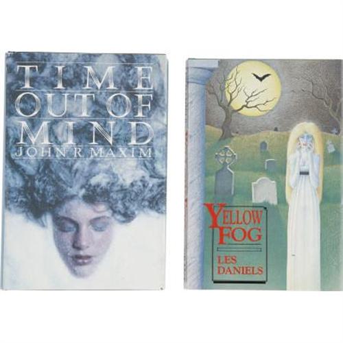 <B>Two Fantasy Titles from the 1980s</B></I>, including: <B>Les Daniels. </B></I><B><I>Yellow Fog</B></I></B></I>. West Kingston, Rhode Island: Donald M. Grant, Publisher, Inc., [1986]. First edition. Signed by the author and the illustrator on the limitation page bound in front. Octavo. 191 pages. Illustrated by Frank Villano. Publisher's green cloth with gilt spine titles. In original pictorial dust jacket. Fine condition. [and:] <B>John R. Maxim. </B></I><B><I>Time Out of Mind</B></I></B></I>. Boston: Houghton Mifflin Company, 1986. First edition. Octavo. 502 pages. Publisher's blue cloth over gray paper boards with silver spine titles. <I>From the Robert and Diane Yaspan Collection.</B></I><BR><BR><b>Shipping:</b> Books & Catalogs (<a target="_blank" href="http://www.heritageauctions.com/common/shipping.php">view shipping information</a>)
