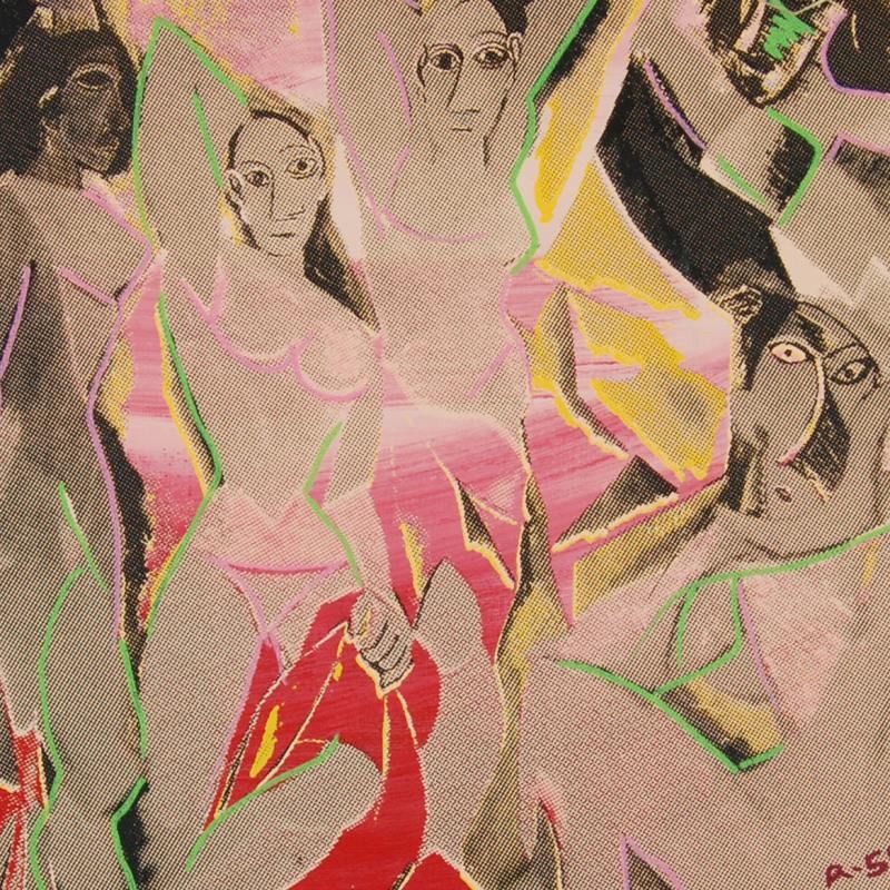 "Les Demoiselles d'Avignon" is a one-of-a-kind hand-pulled silkscreen and mixed media painting on canvas by Ringo. This piece is hand signed by the artist and comes from the Andy Warhol Legacy Series. Includes Certificate of Authenticity. Due to the nature of the canvas, these pieces will need to be mounted for framing. Measures approx. 16" x 16" (image).