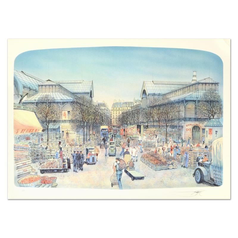 "Les Halles" is a limited edition lithograph on paper by Rolf Rafflewski, numbered and hand signed by the artist! Measures approx. 29.5" x 21.5" (border). 27" x 19" (image).