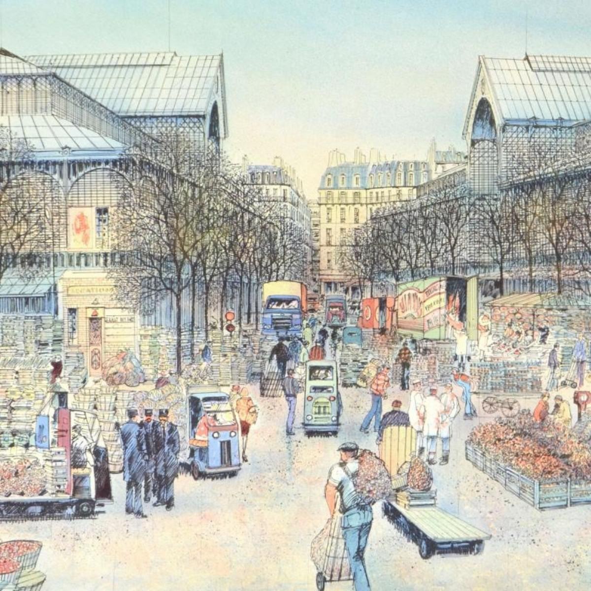 "Les Halles" is a limited edition lithograph on paper by Rolf Rafflewski, numbered and hand signed by the artist! Measures approx. 29.5" x 21.5" (border). 27" x 19" (image).